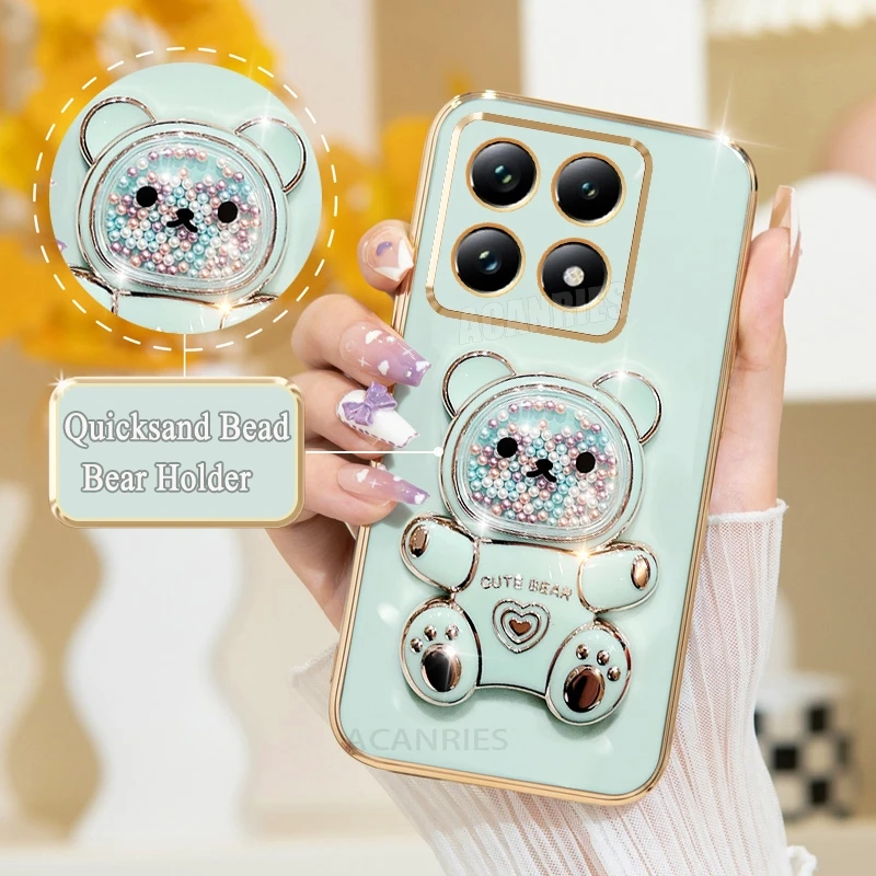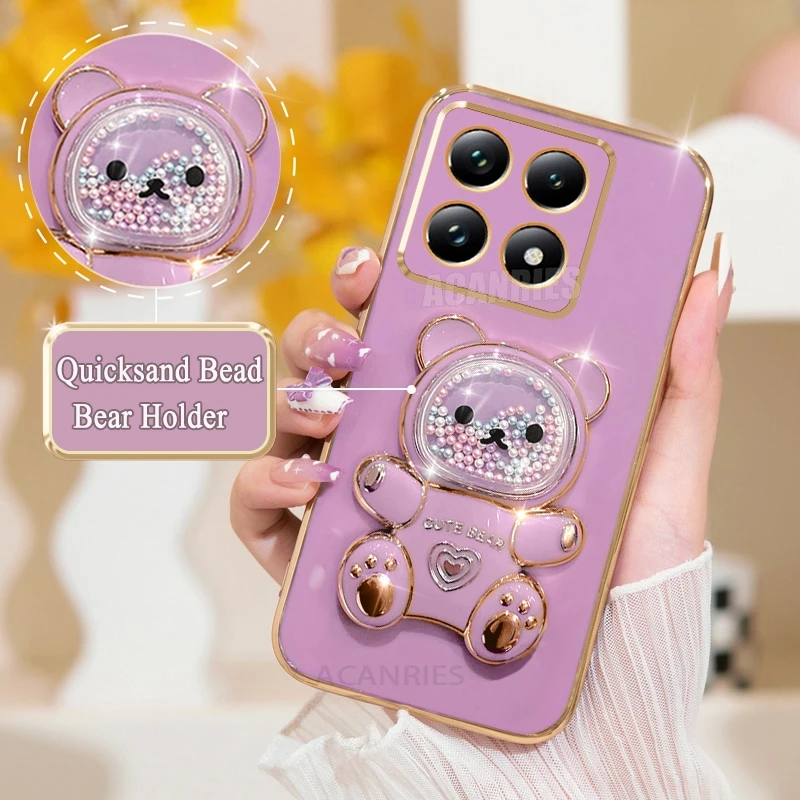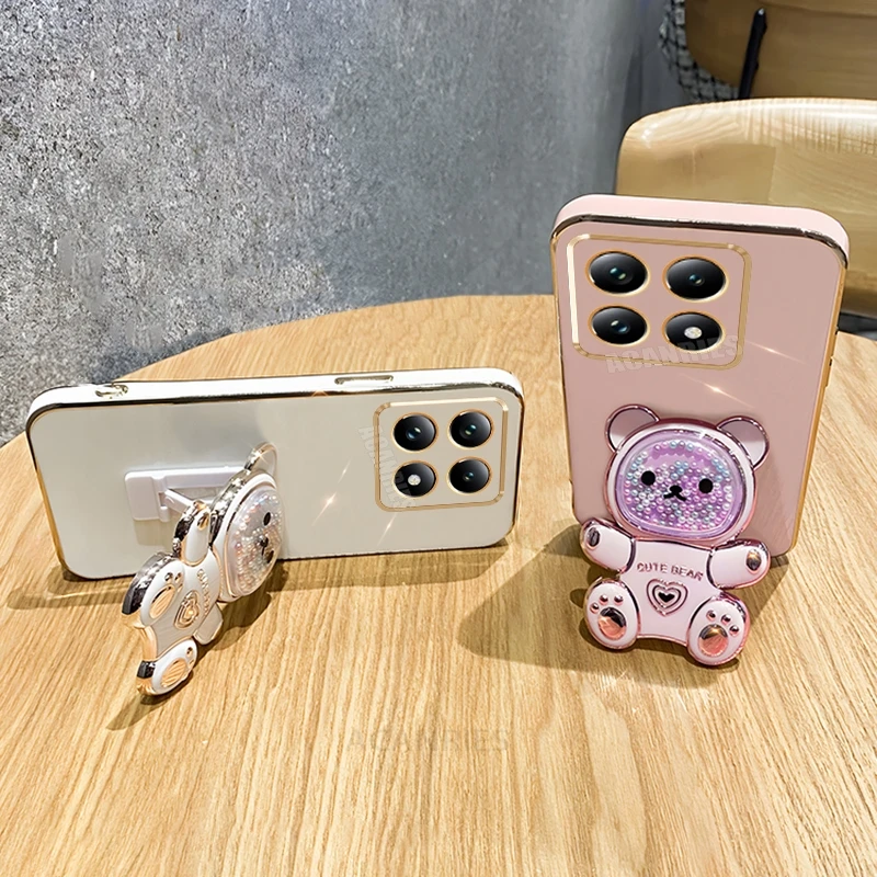 Mi14t funda chapada con soporte de oso de arenas movedizas de lujo para Xiaomi Mi 14t Pro 14tpro Mi14 14 T funda de silicona con soporte Xiaomi14t Mi14tpro