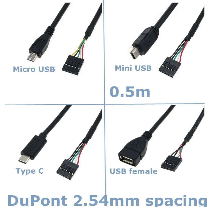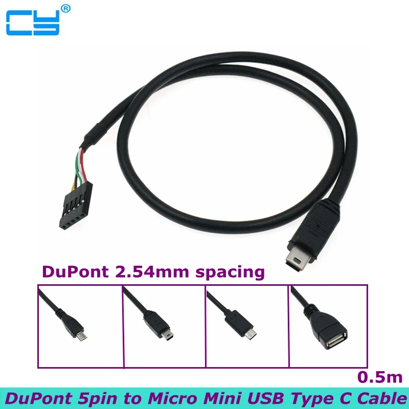 Comprar Micro 5P Mini USB tipo C macho, 2,0 hembra a 2,54mm, placa base PCB de 5 pulgadas, cable DuPont, 0,5 metros de distancia