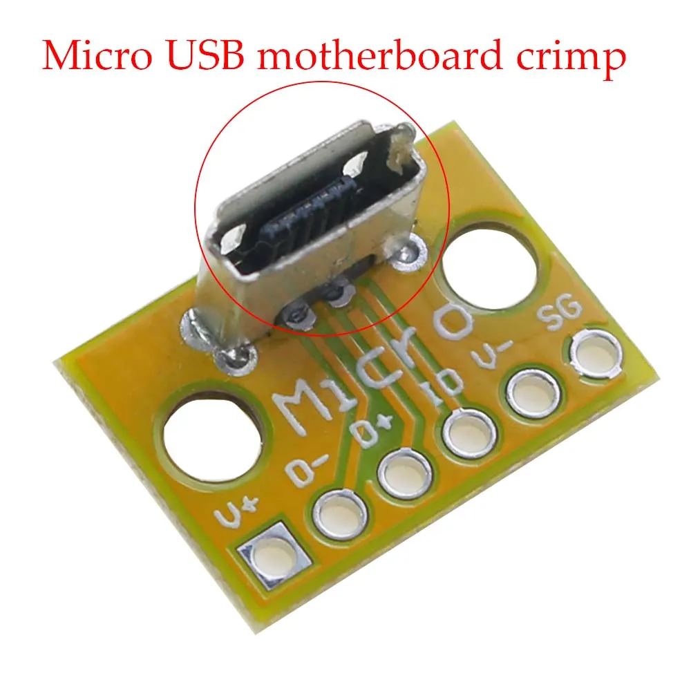 Placa PCB Vertical Horizontal Micro Hembra, Placa de Soldadura USB, Android, Enchufe Micro Macho, Enchufe de Teléfono de Carga, 1 ", 1"