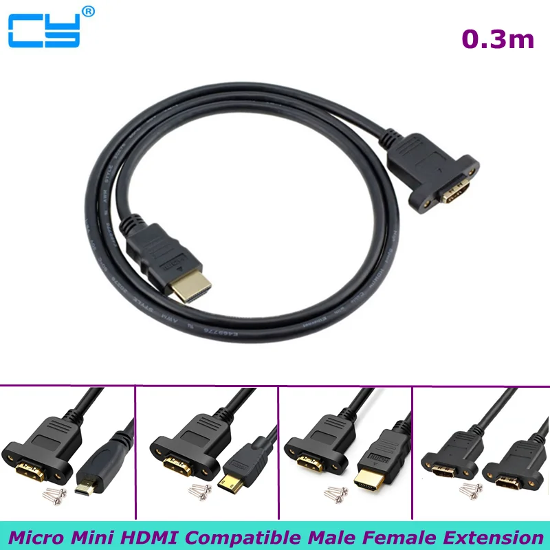 Comprar Micro HDMI macho a Mini HDMI hembra compatible con HDMI con orificios para tornillos a Cable de Panel seguro una hembra a D macho 30CM