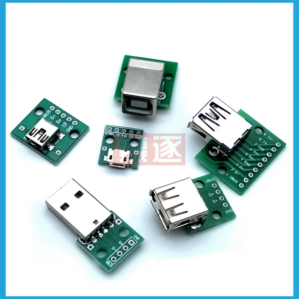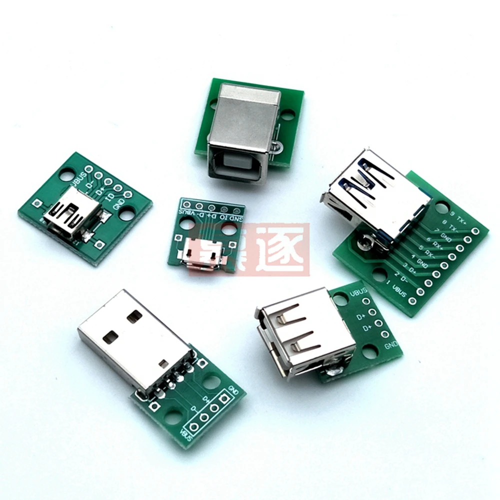 Comprar Micro Mini USB USB A macho USB 2,0 3,0 A hembra interfaz de conector USB B a placa de ruptura de adaptador convertidor PCB DIP de 2,54mm