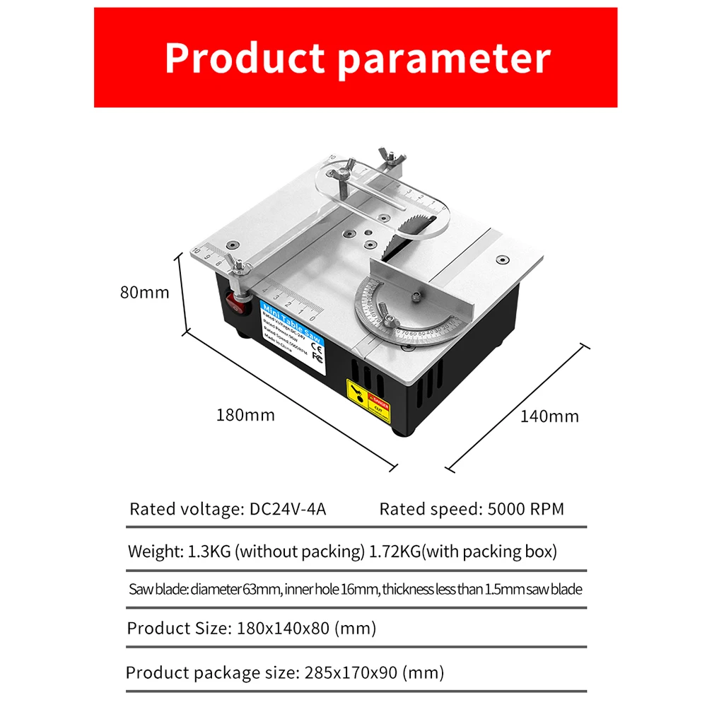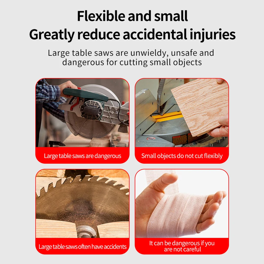 4. Tapón de seguridad: material acrílico transparente, no bloquea la línea de visión colocada en la parte superior de la hoja de sierra, para evitar que los dedos toquen accidentalmente la hoja de sierra