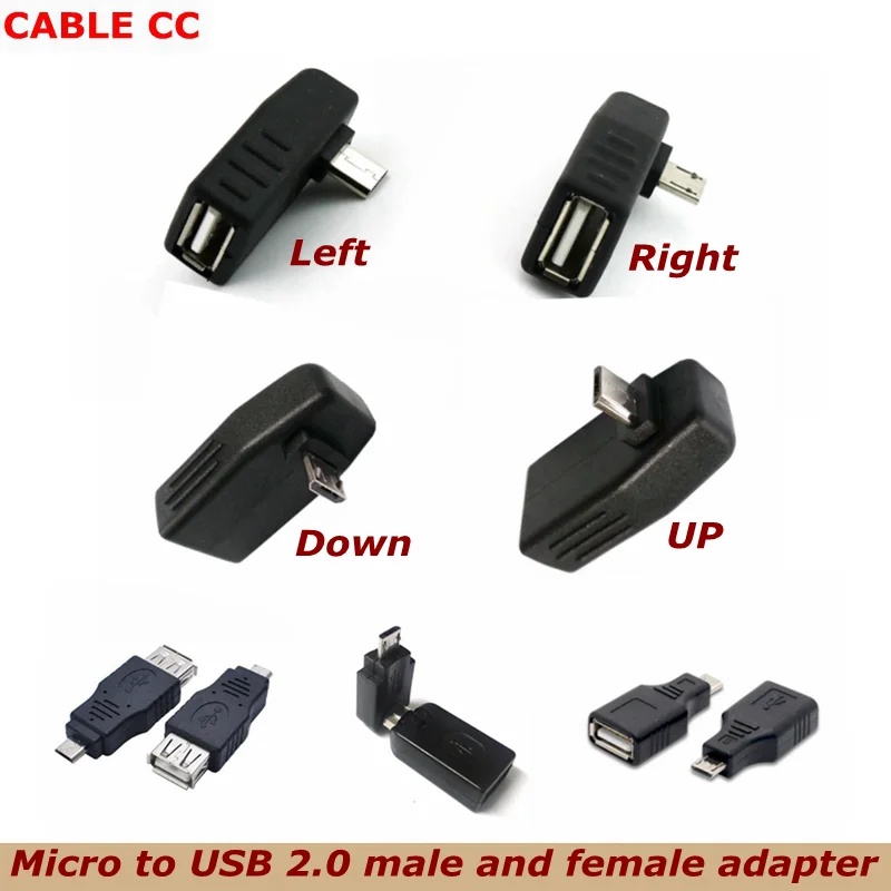 Comprar Micro USB de 5 pines macho a USB hembra, conector de ángulo de 90 grados, sincronización de datos, adaptador OTG para coche, MP4, teléfono móvil, disco U