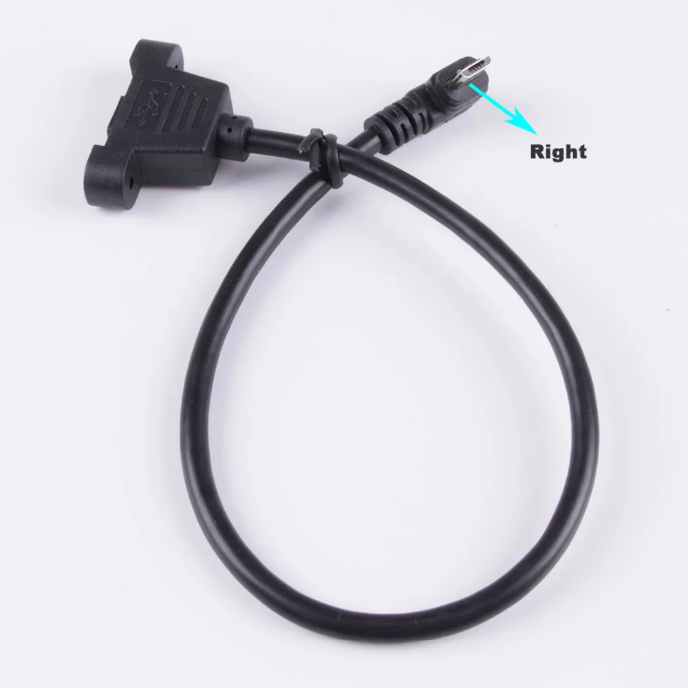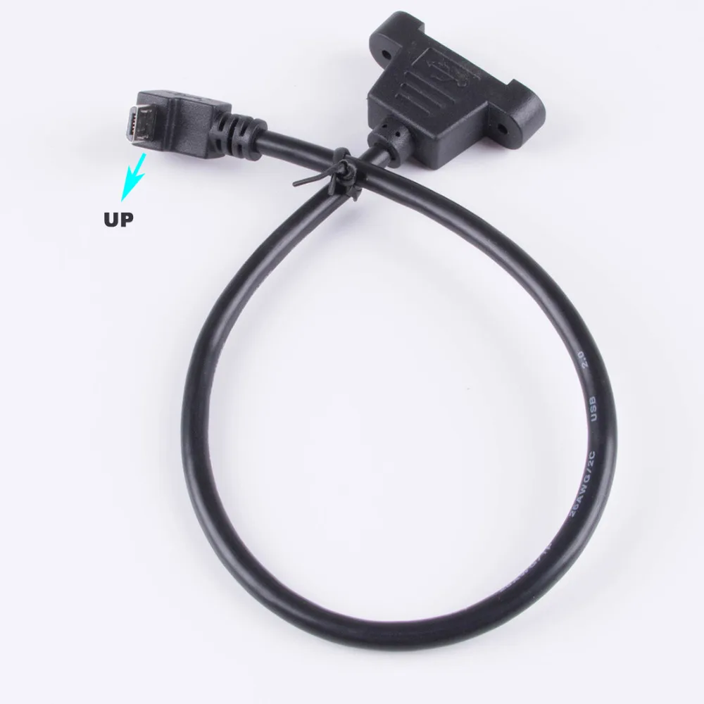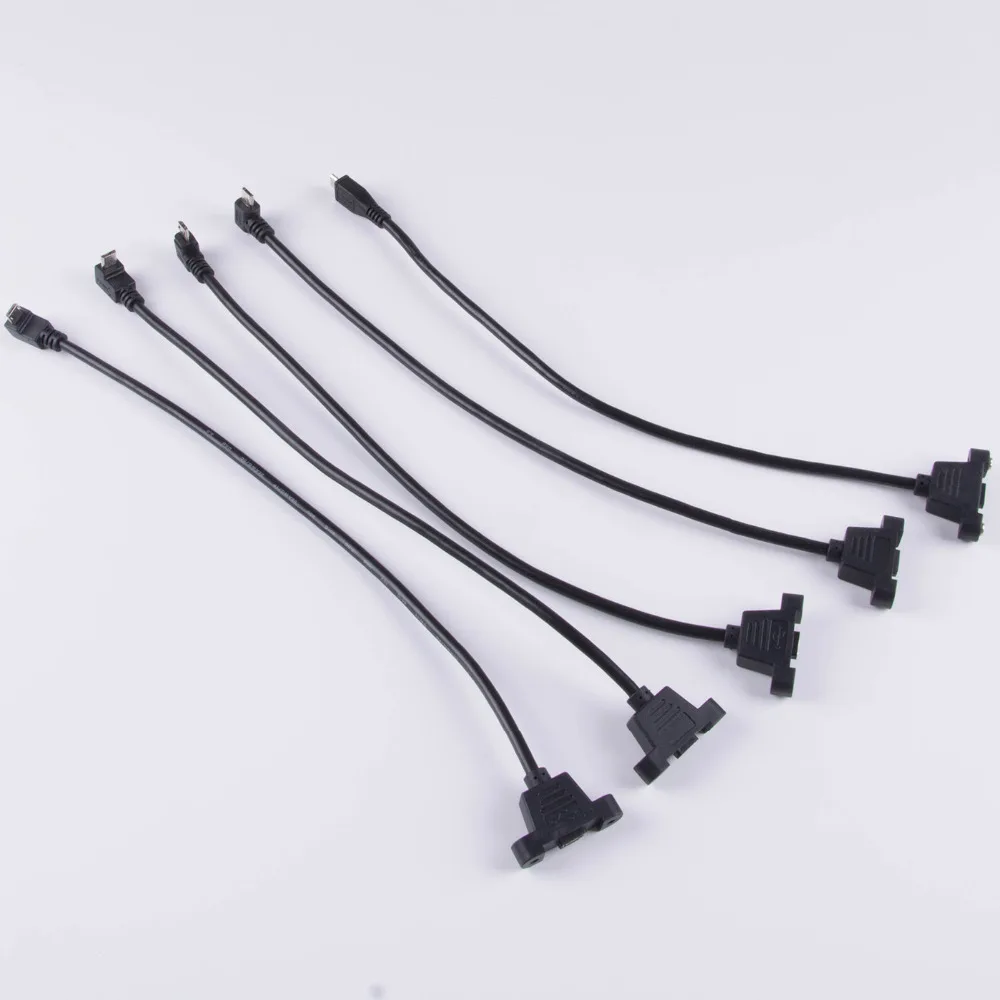 Micro-USB 5 pines Micro USB en ángulo USB 2,0 conector macho a Micro USB2.0 Cable de extensión hembra 30/50cm con tornillos Agujero de montaje en panel