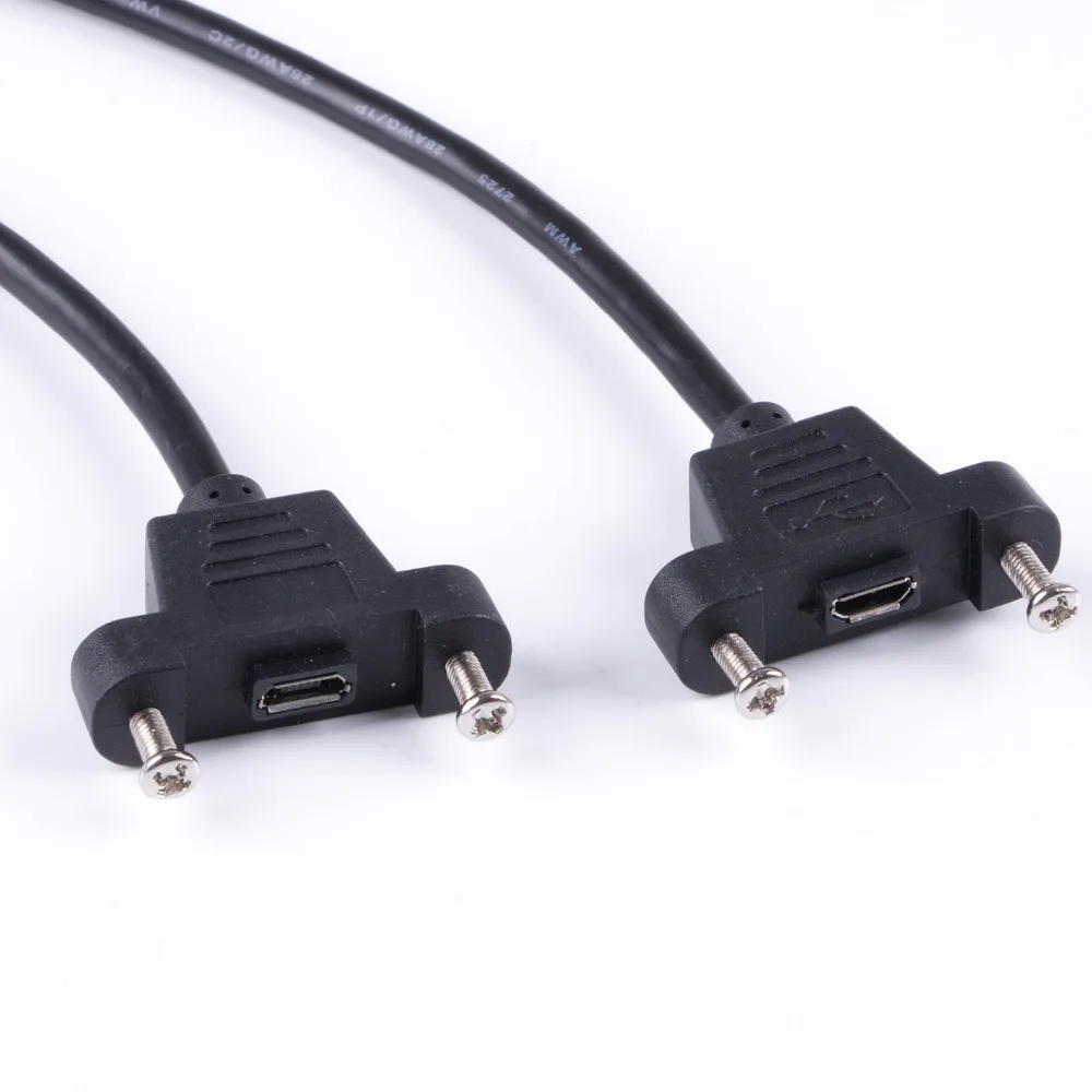 Comprar Micro-usb 5pin Micro USB 2,0 conector macho a Micro USB 2,0 Cable de extensión hembra 30/50cm con tornillos agujero de montaje en Panel