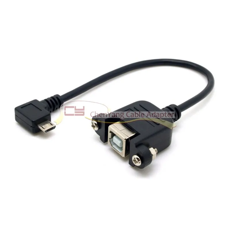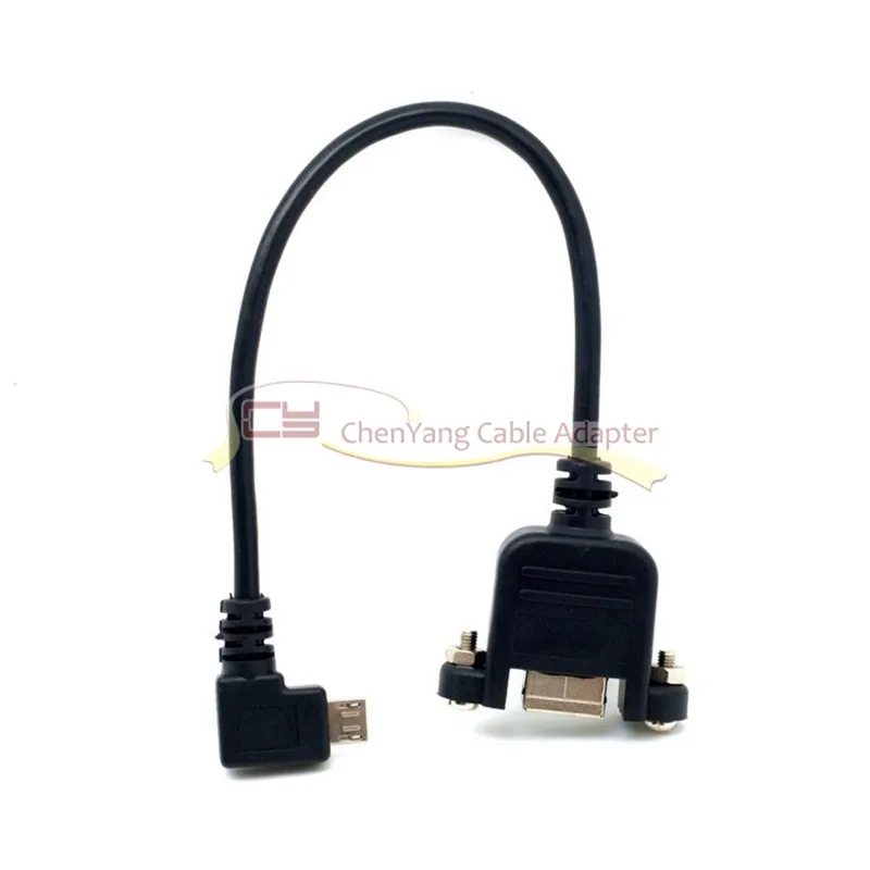 Comprar Micro USB con ángulo izquierdo de 90 grados, 20cm, 5 pines, macho a USB B hembra, Cable tipo de montaje en Panel con tornillos