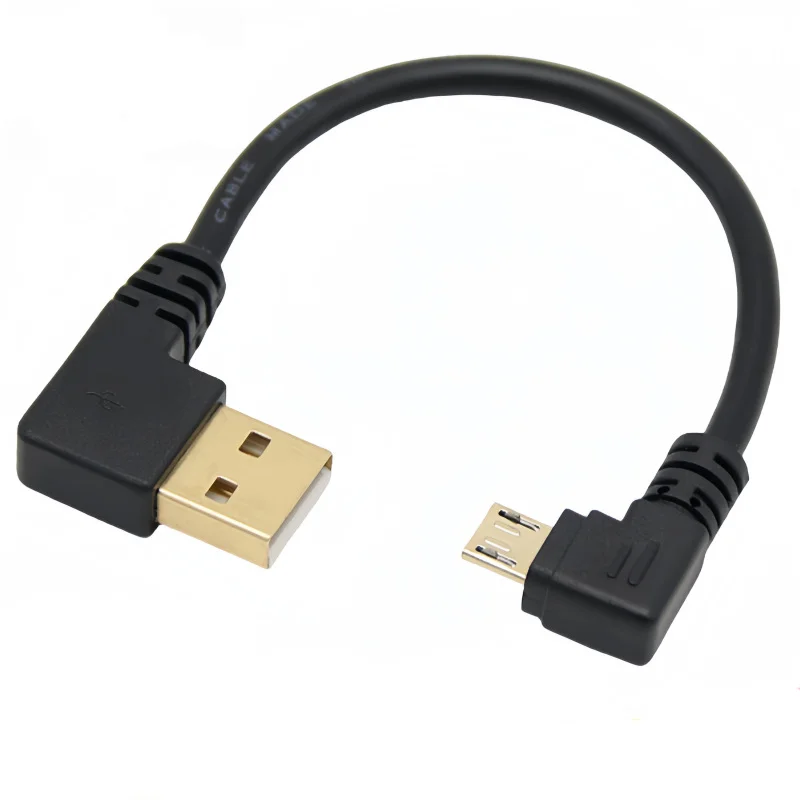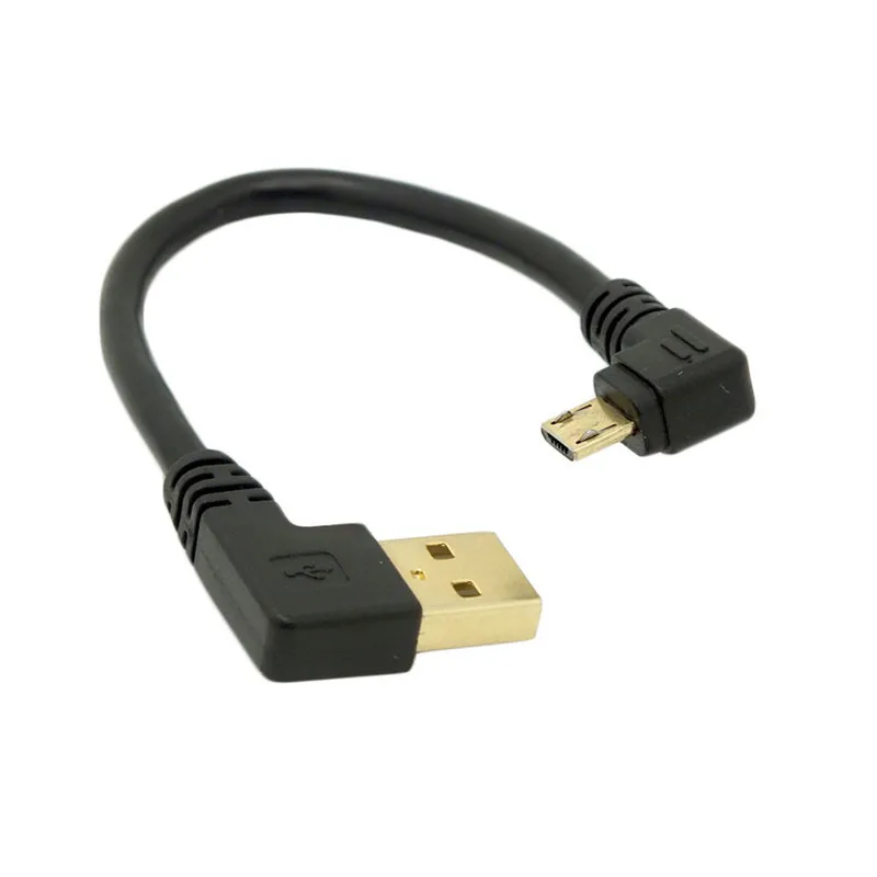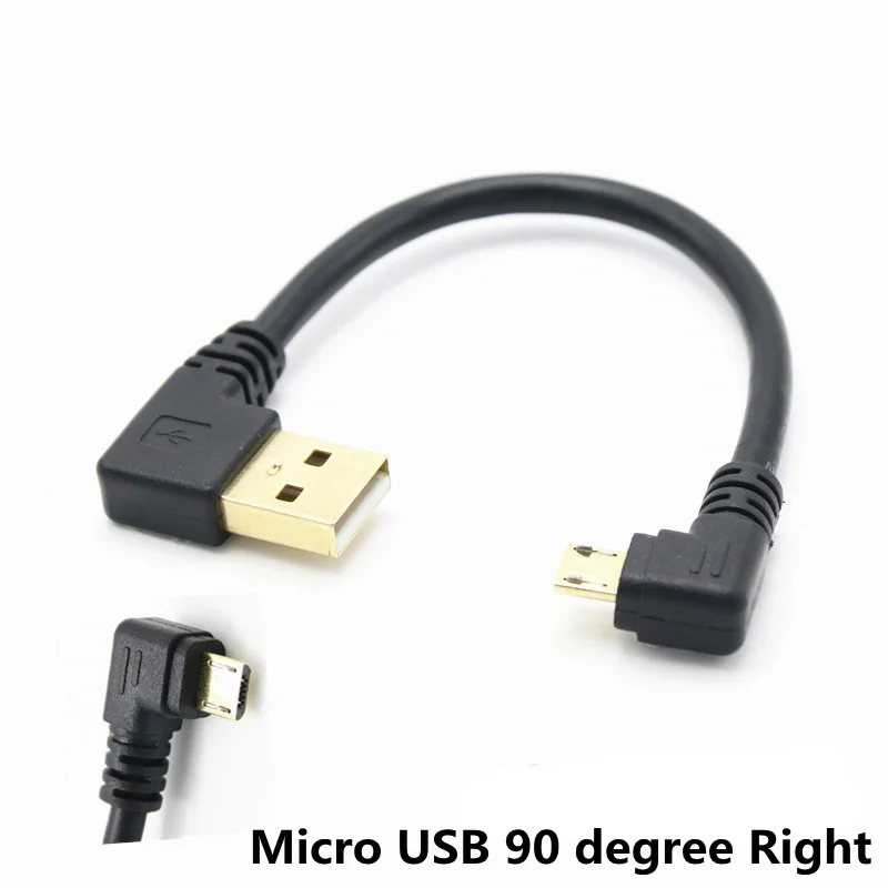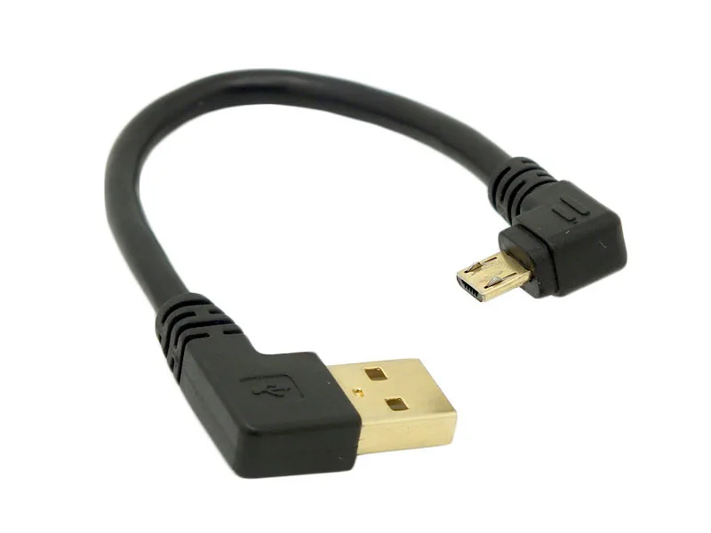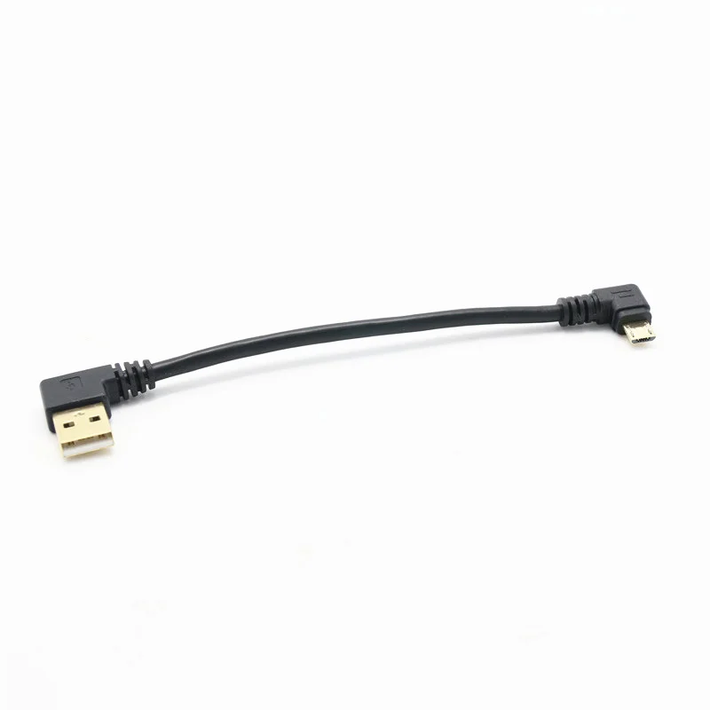 Comprar Micro USB de ángulo recto chapado en oro corto a USB en ángulo izquierdo Tpye A macho Cable de carga de datos de 90 grados para teléfono móvil