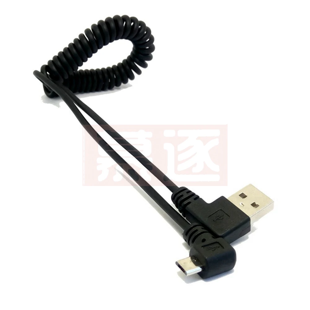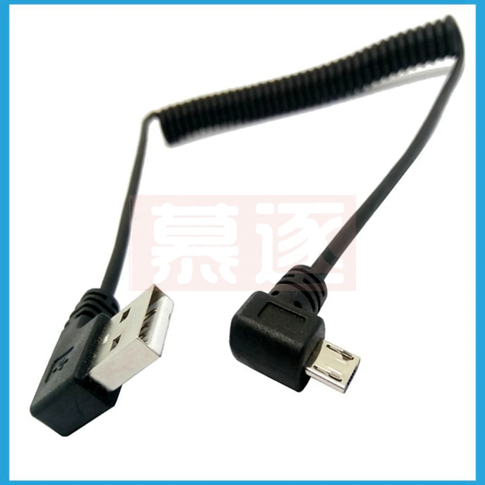 Comprar Micro usb macho de 90 grados con ángulo recto a usb macho, resorte en ángulo izquierdo/derecho, cable elástico retráctil, sincronización de carga de datos, 1m