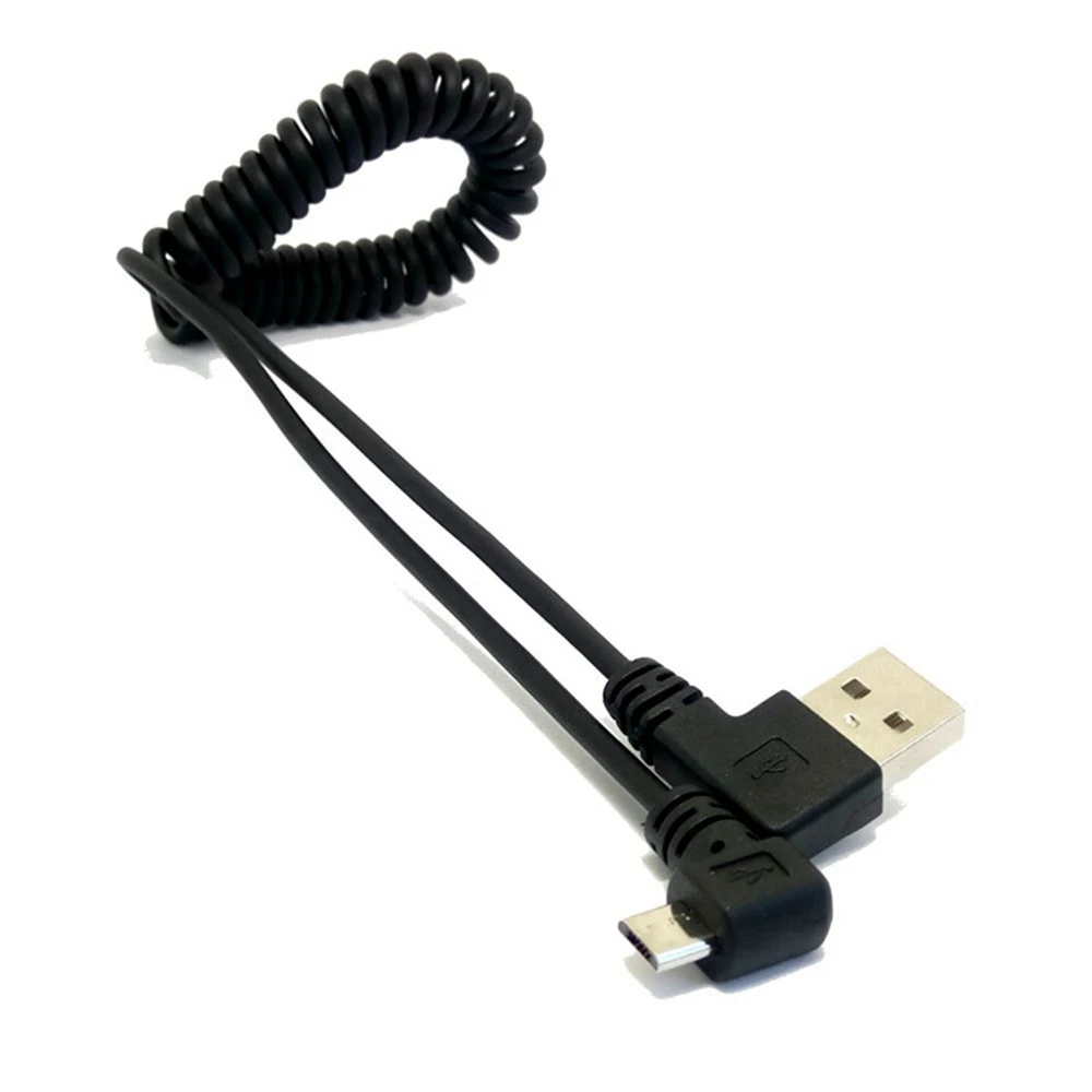 Comprar Micro usb macho de 90 grados con ángulo recto a usb macho, resorte en ángulo izquierdo/derecho, cable elástico retráctil, sincronización de carga de datos, 1m