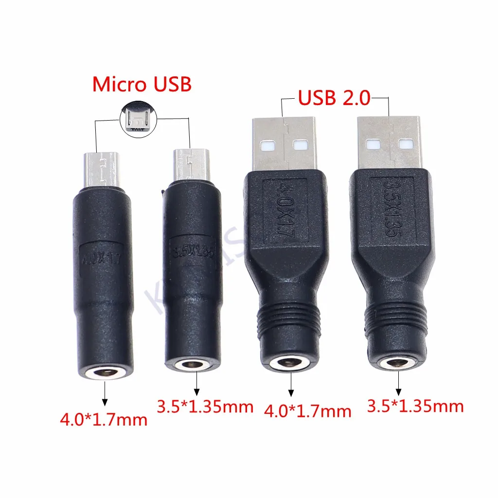 Micro USB / USB 2.0 Male to DC 3.5*1.35 / 4.0*1.7 mm Female Plug Jack Converter Laptop Adapter Connector