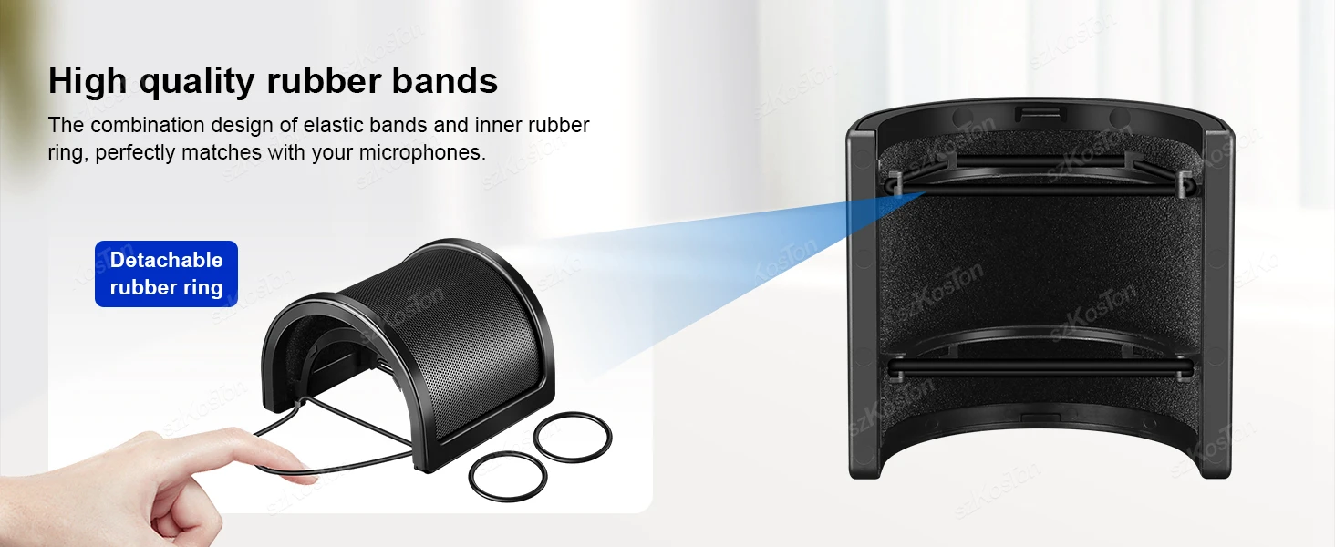 FÁCIL DE CONFIGURAR: Práctico y rápido de montar y desmontar del micrófono y firmemente fijado en su micrófono con el diseño combinado de bandas elásticas y anillo de goma interior. El diseño especial combina perfectamente con sus micrófonos.