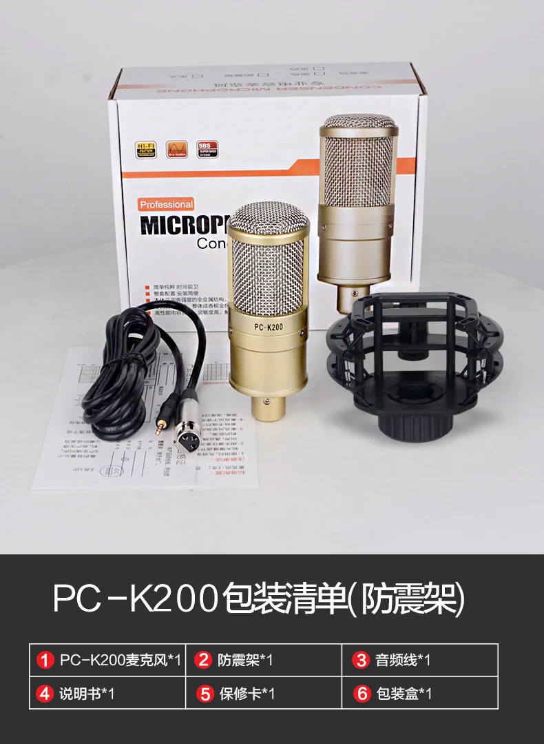 Configuración estándar: micrófono +Marco o portabrocas a prueba de golpes+ Cable de audio de 2,5 m + manual chino + embalaje de cartón