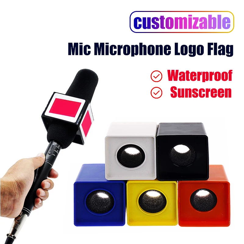Comprar Micrófono cuadrado ABS para entrevista KTV, soporte de bandera con logotipo, forma de cubo, novedad, 1 unidad