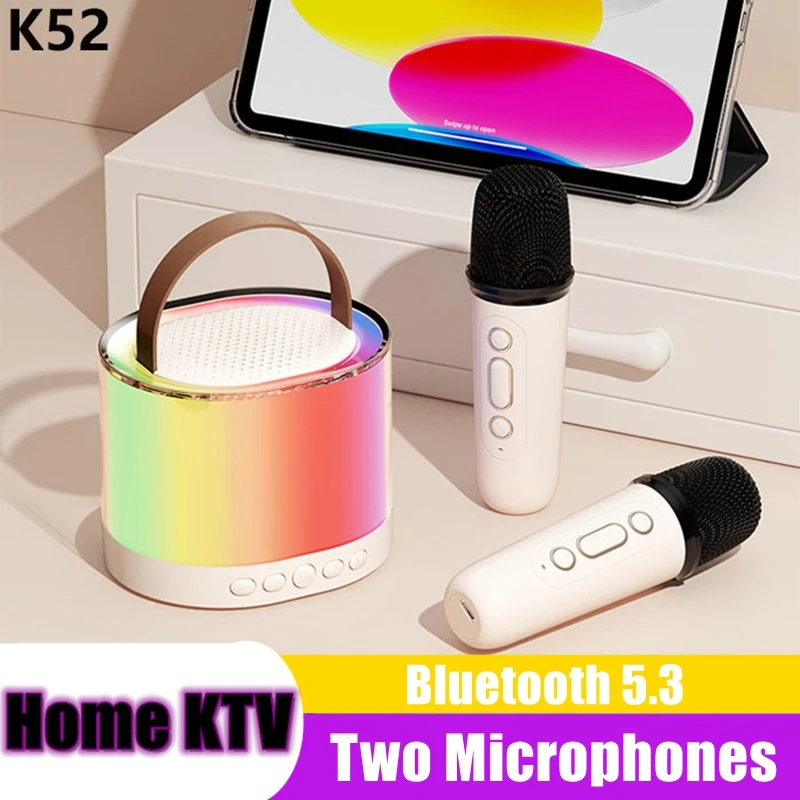 Altavoz inalámbrico Bluetooth K52 multifunción con doble micrófono, luz RGB, reproductor de música portátil, máquina de Karaoke para regalo del hogar para niñosModelo: K52Tiempo de cotización: 2024Tipos de micrófono: micrófono para niños, micrófono de karaoke móvil, KTV/micrófono específico de rendimientoVersión de Bluetooth: 5,3Tamaño: 110*84mmPeso: alrededor de 450 g / 500 gEl embalaje incluye:1 * sistema de audio1 o 2 * micrófono