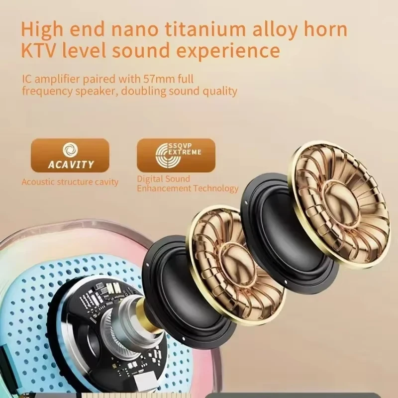 Comprar Micrófono inalámbrico K52, micrófono de Audio integrado, altavoz de canción K, inalámbrico, Bluetooth, versión para cantar en casa, conjunto Ktv