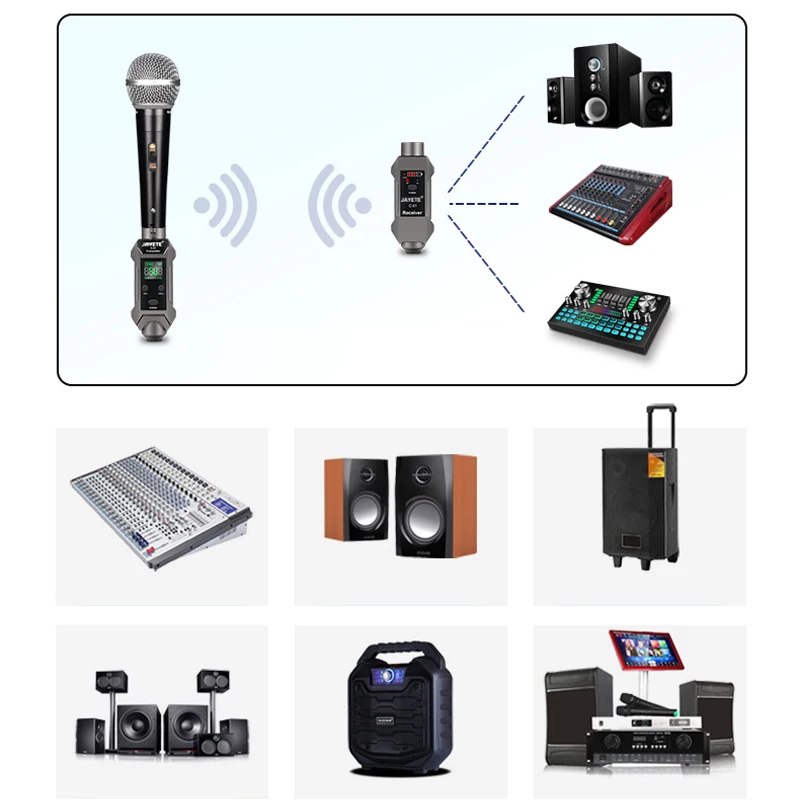 Micrófono de mano inalámbrico, micrófono de condensador, pantalla HD, transmisor XLR, convertidor receptor, enchufe de 6,35mm, Audio para mezclador dinámico, sistema PA, altavoces, amplificadores