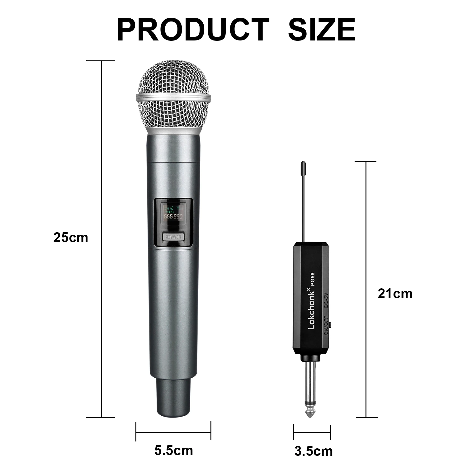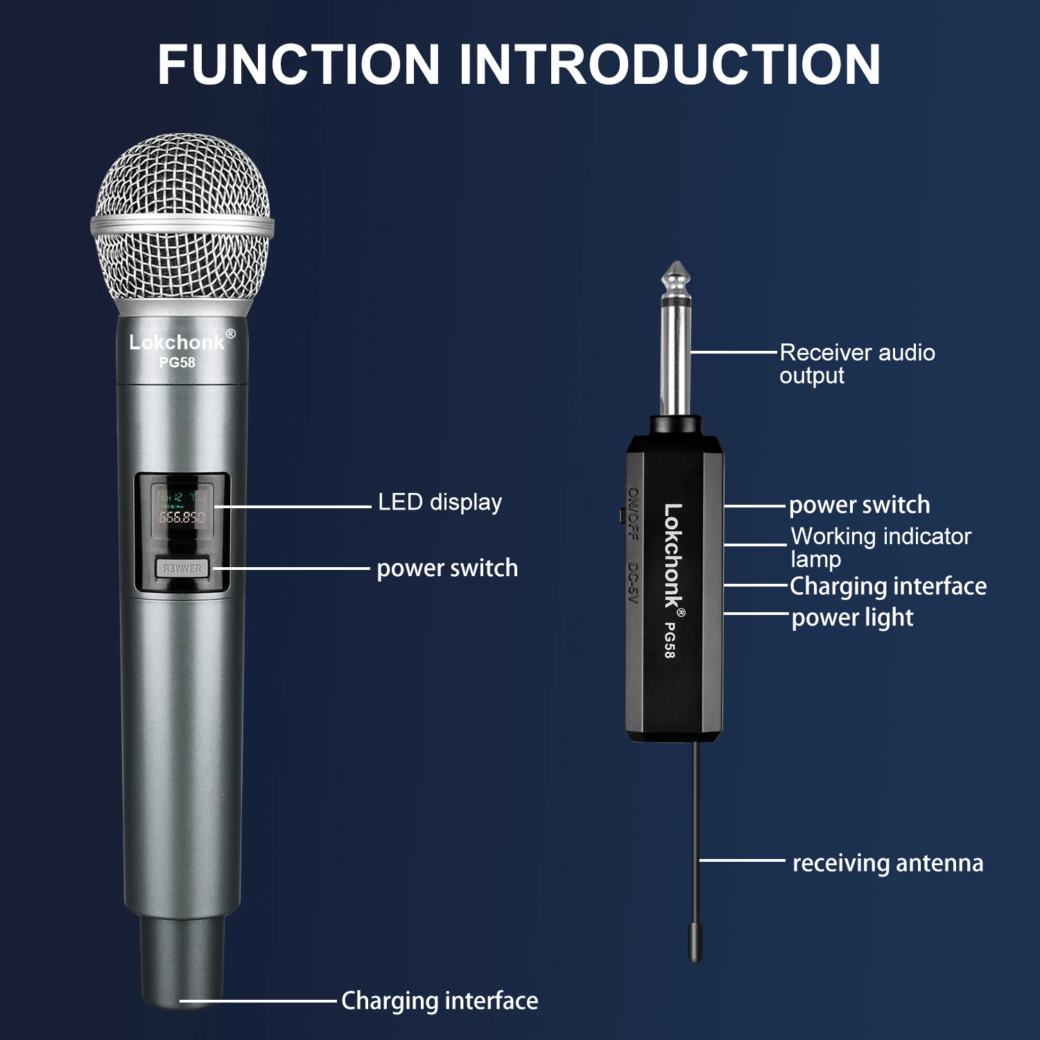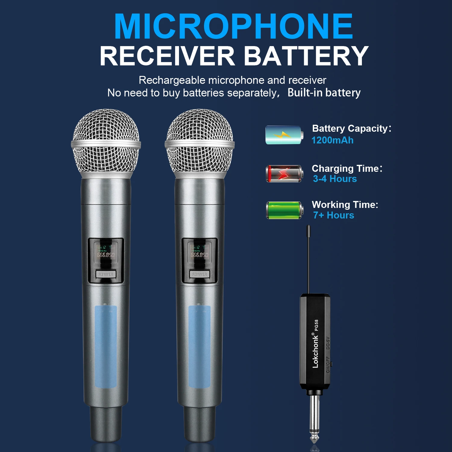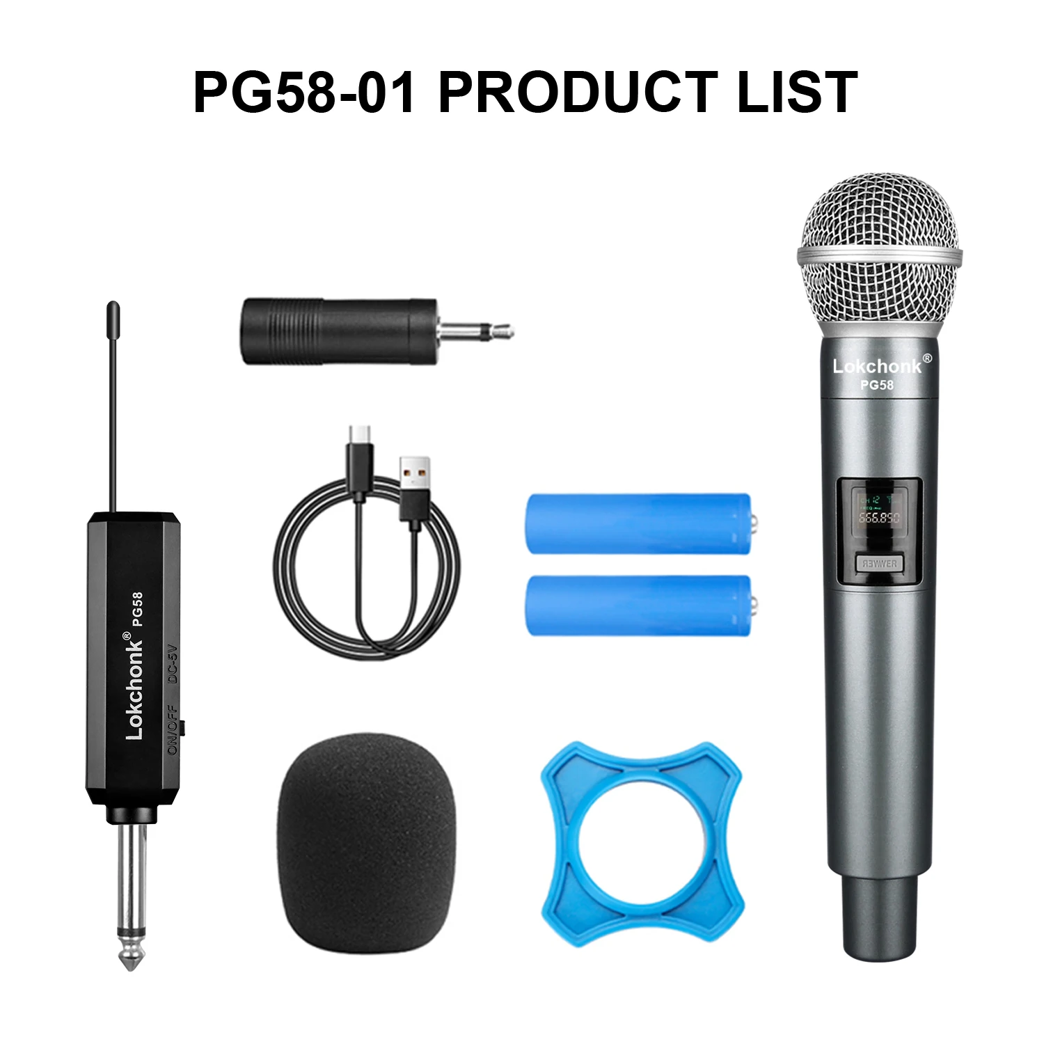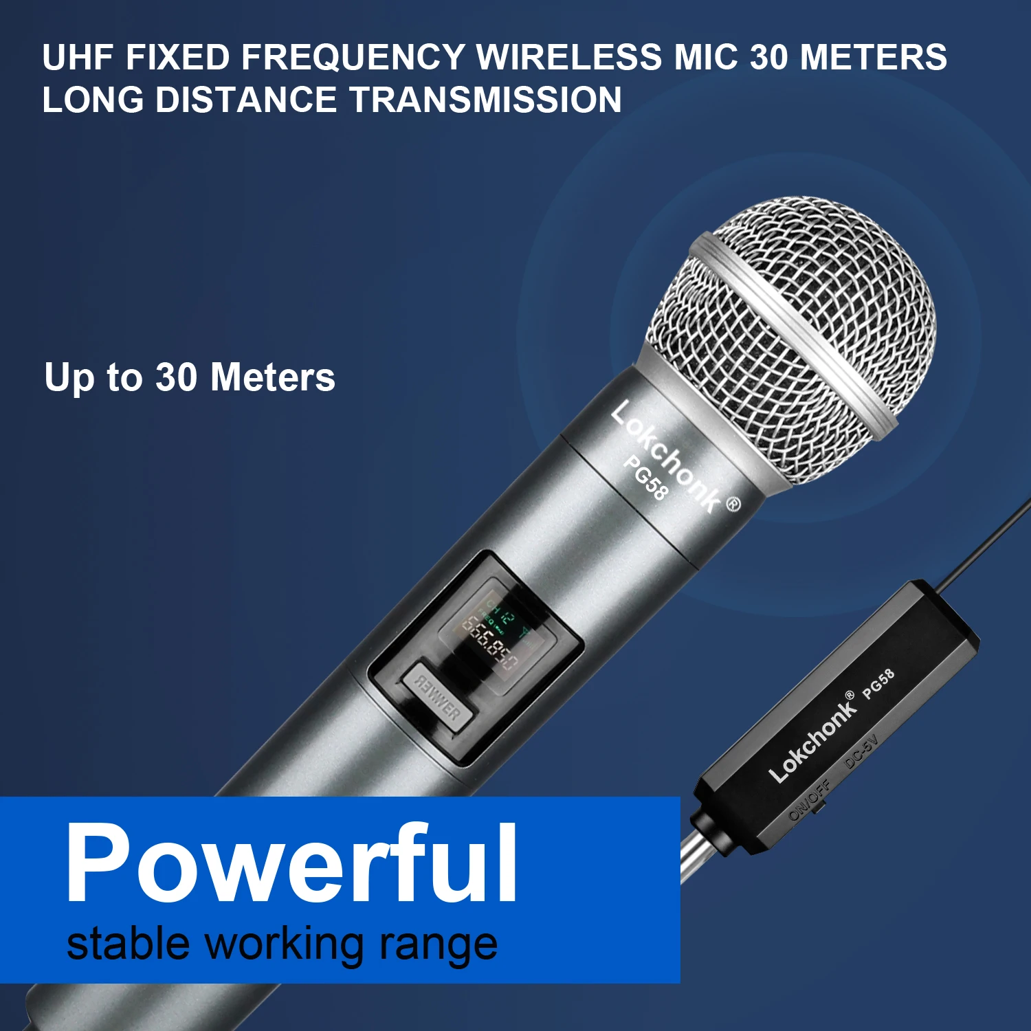 Comprar Micrófono inalámbrico PG58, accesorio de 2 canales, UHF, frecuencia fija, portátil, para fiesta, Karaoke, profesional, iglesia, espectáculo, reunión