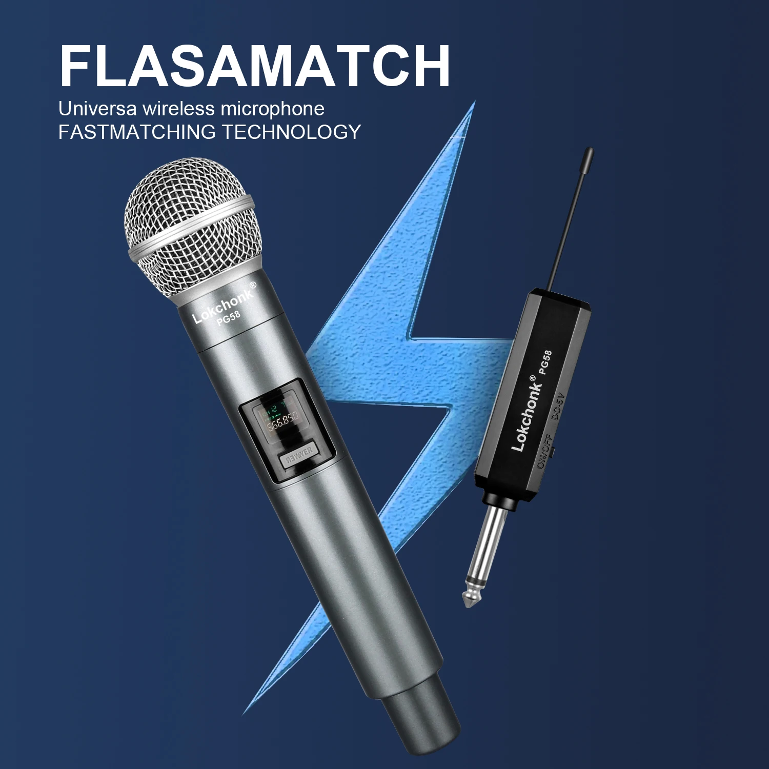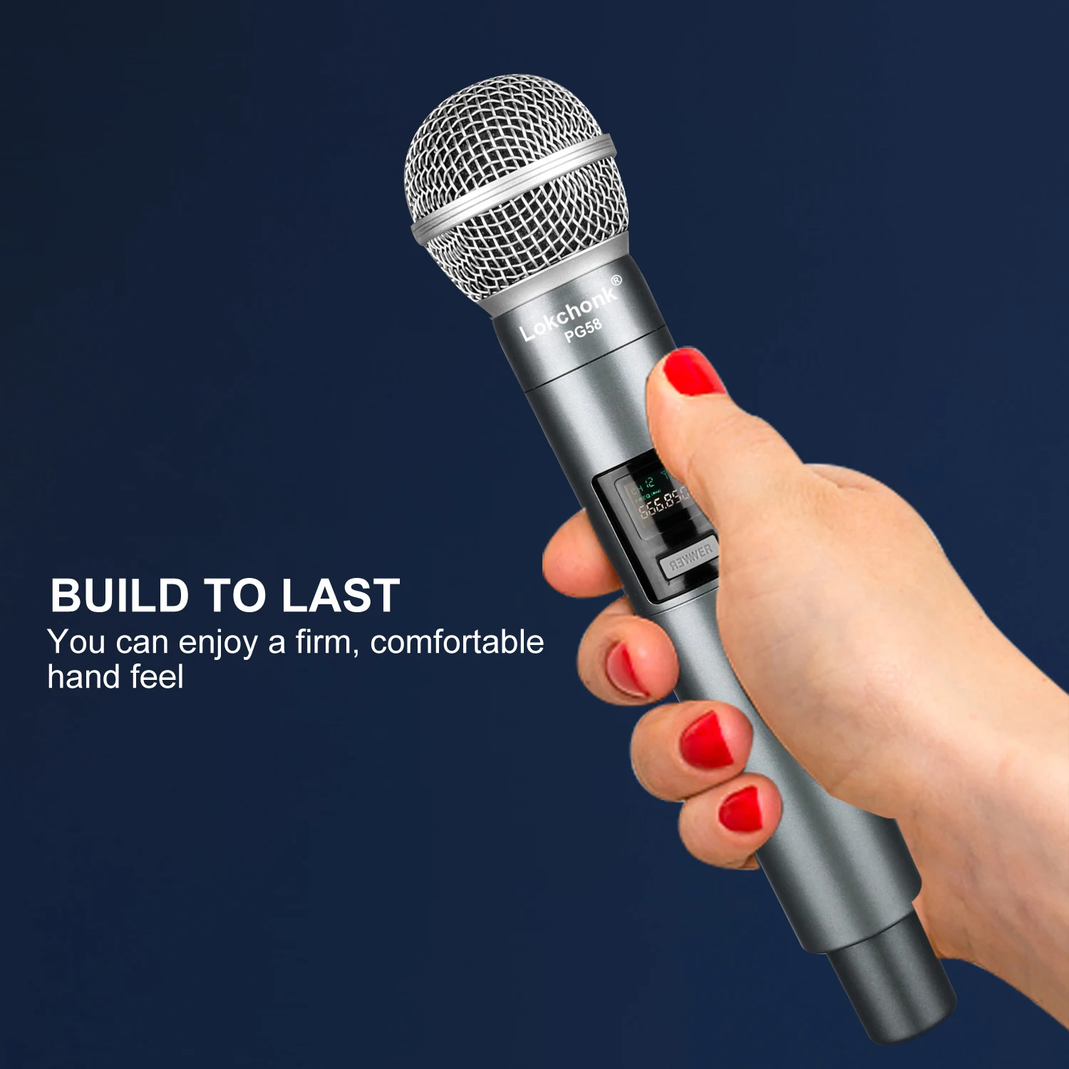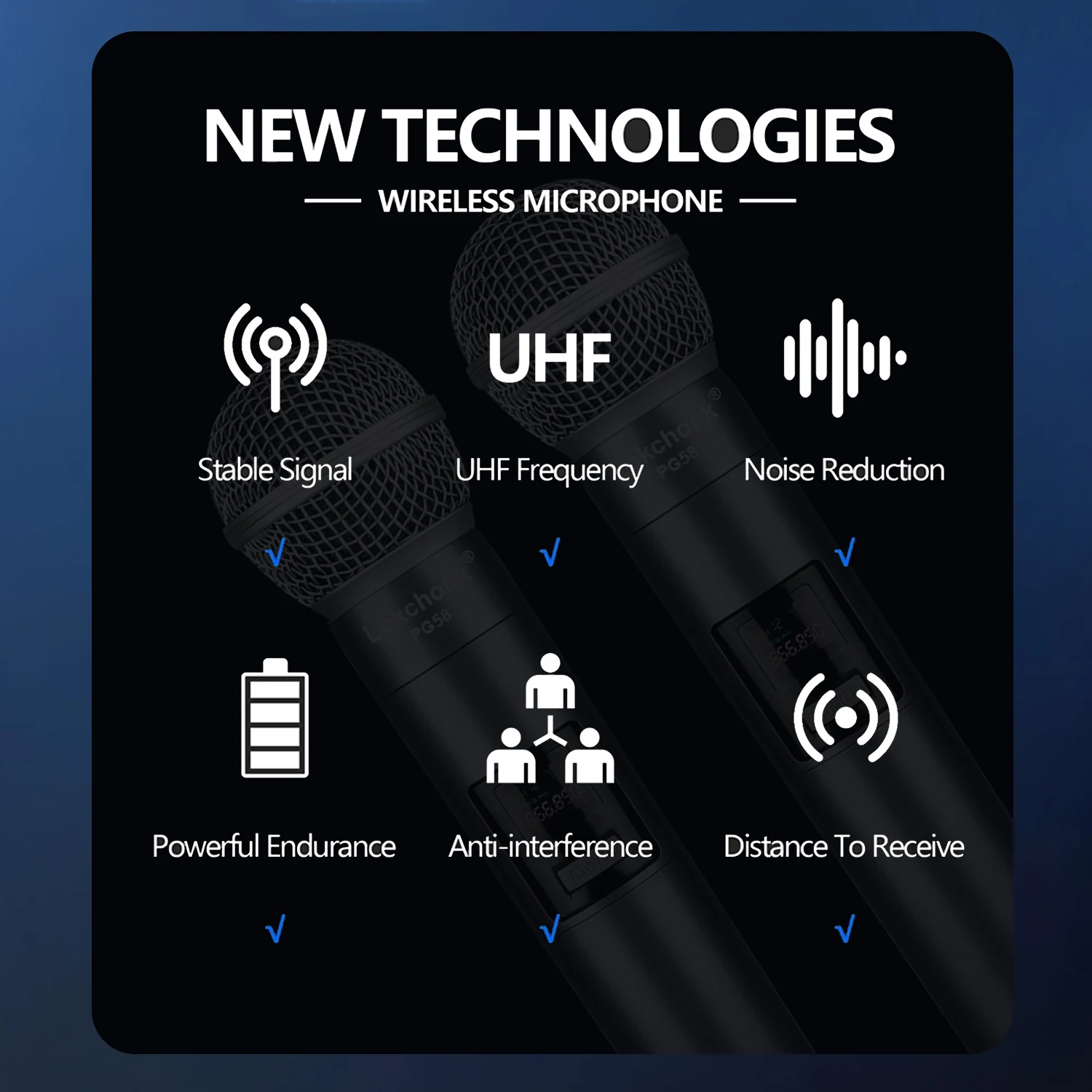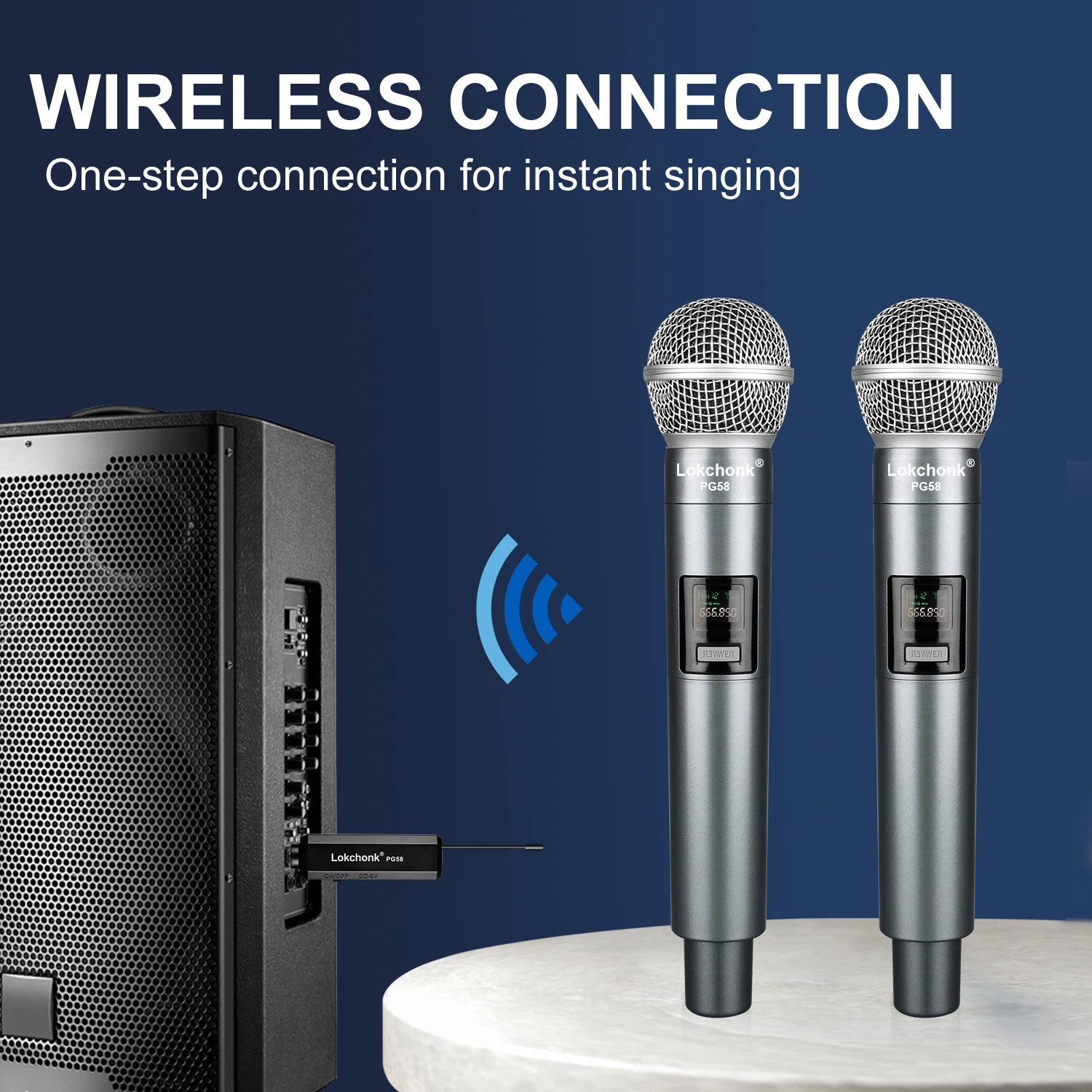 Comprar Micrófono inalámbrico PG58, accesorio de 2 canales, UHF, frecuencia fija, portátil, para fiesta, Karaoke, profesional, iglesia, espectáculo, reunión