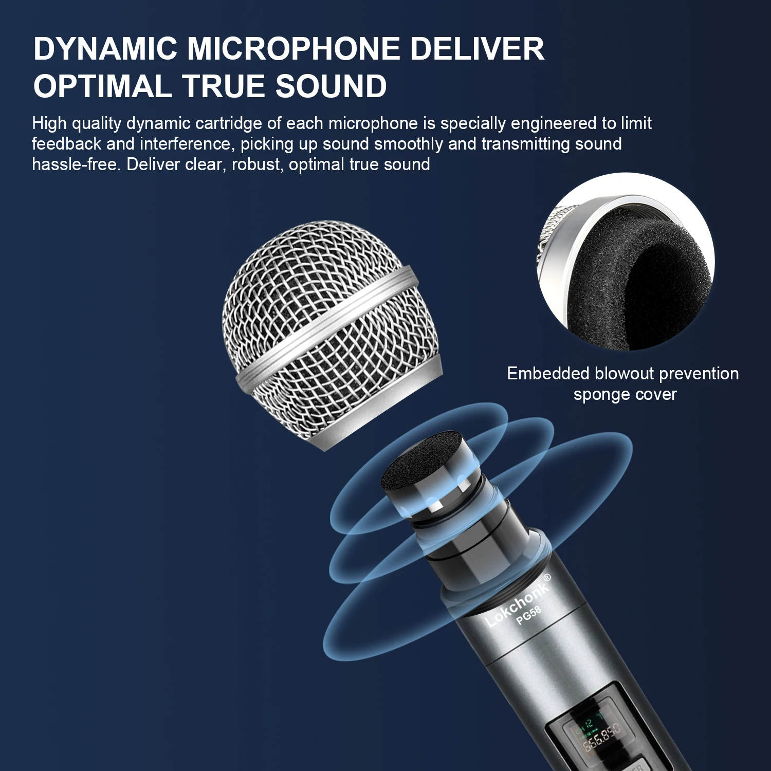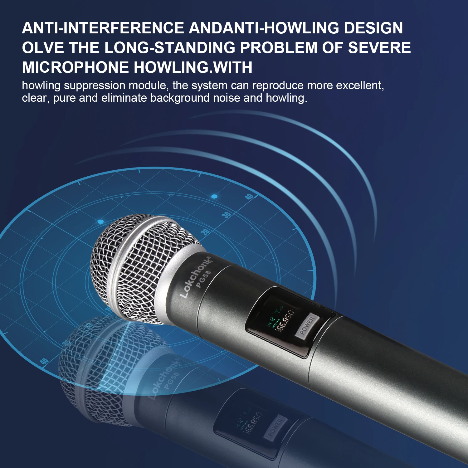 • Frecuencia fija UHF de 2 canales:Disfrute de un sonido cristalino con dos canales de frecuencia fija UHF.
