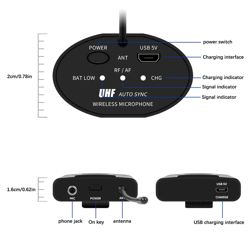 Portátil: este micrófono inalámbrico es pequeño, compacto y ligero, por lo que puede llevarlo o guardarlo fácilmente al salir.
