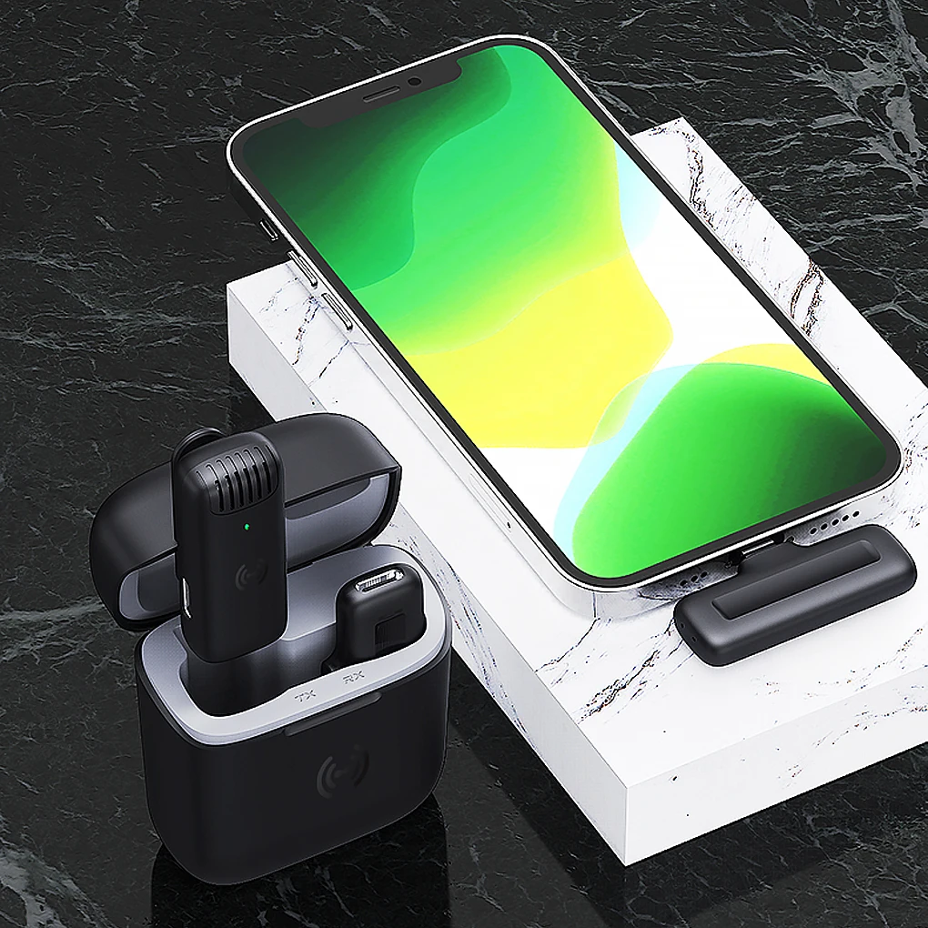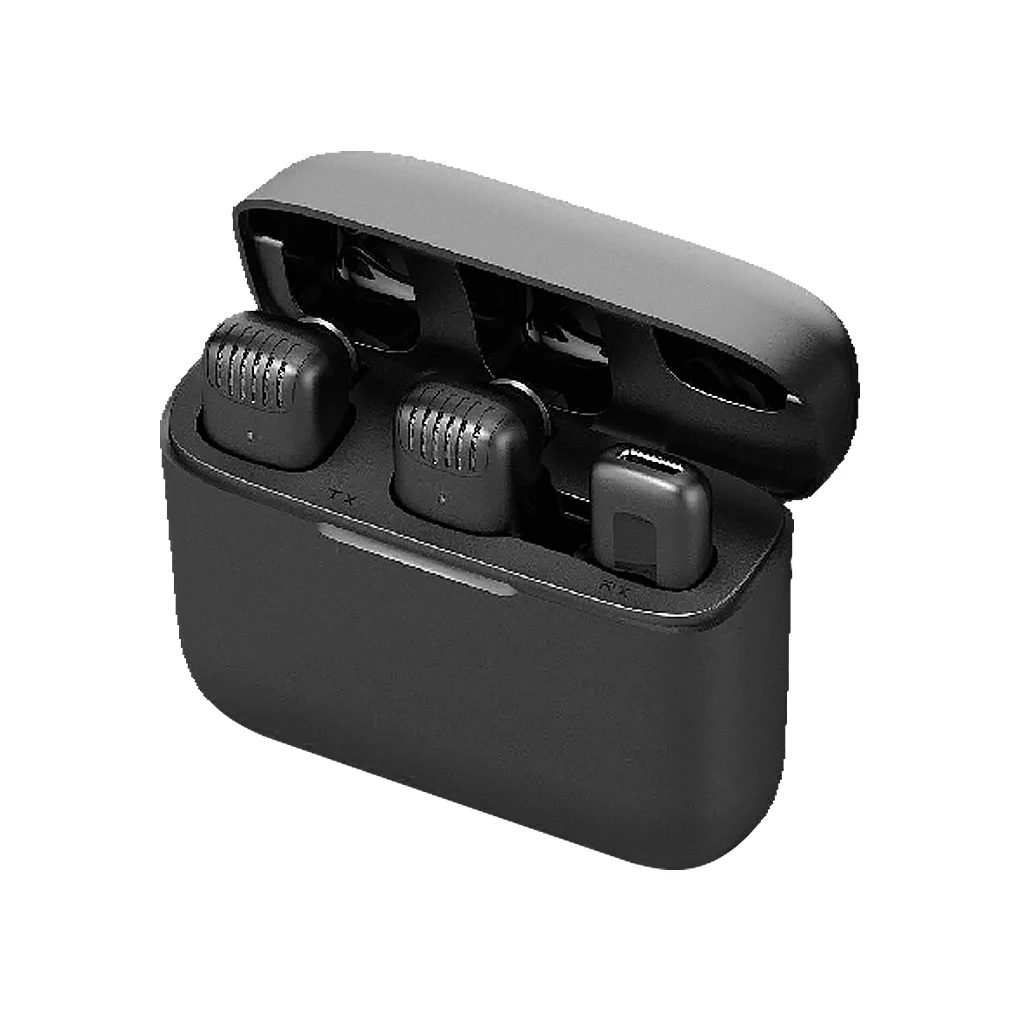 Micrófonos de 2 piezas (con receptor de 1 pieza, cable de carga de 1 pieza, instrucciones de 1 pieza, estuche de carga de 1 pieza).