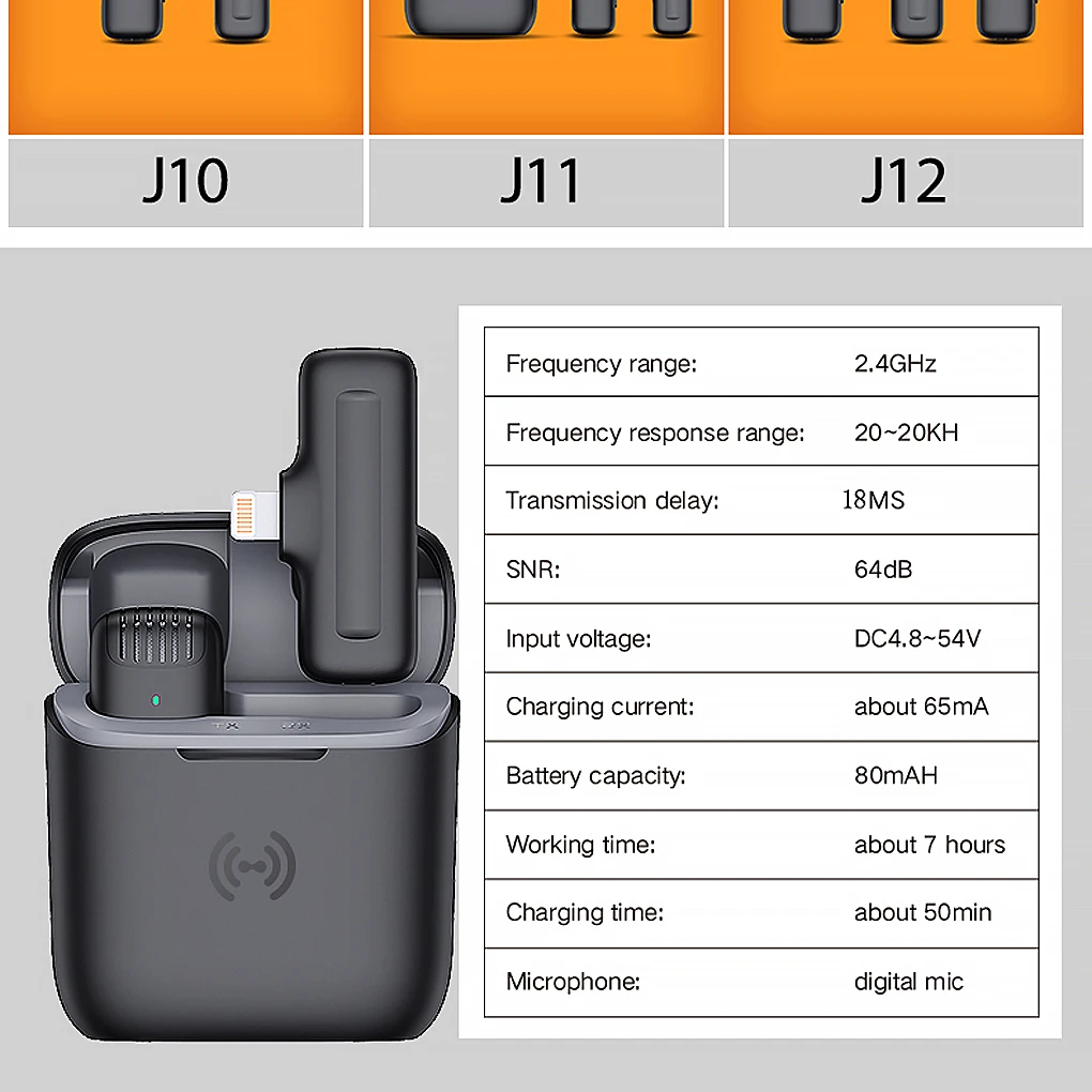 J12: 1 pieza de receptor, 2 piezas de micrófonos, sin estuche de carga.