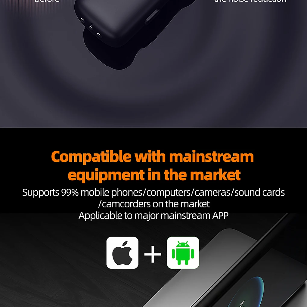 Reducción de ruido: el chip de cancelación de ruido incorporado funciona con una fuerte capacidad antiinterferencia y puede identificar su sonido de manera efectiva, conveniente para que grabe el sonido en un entorno ruidoso.