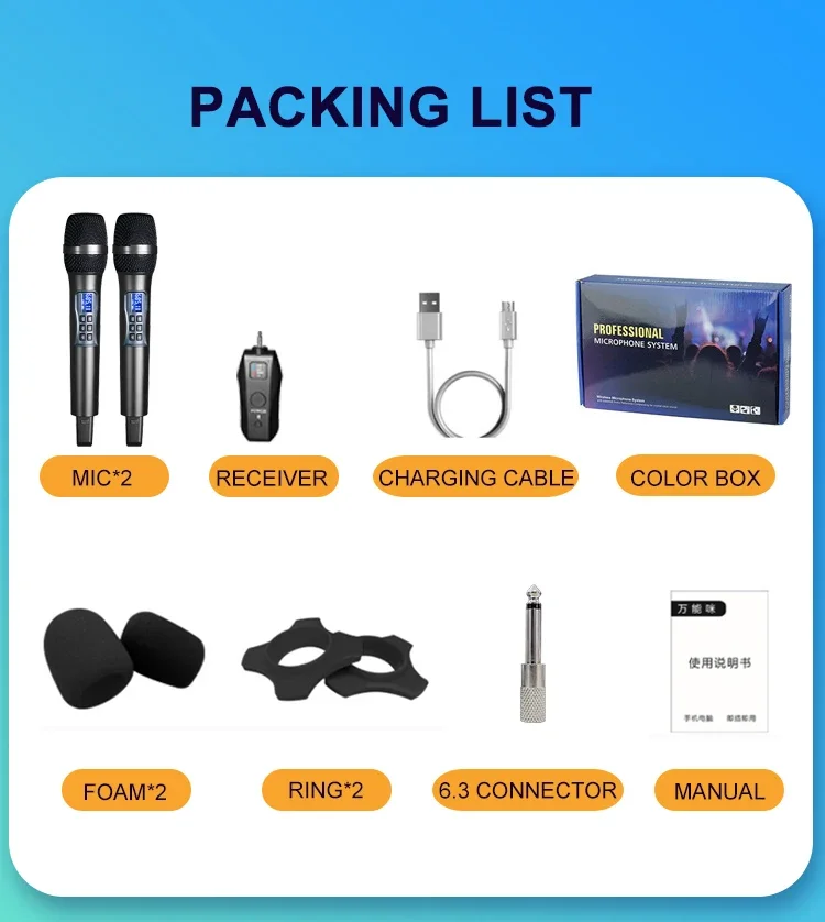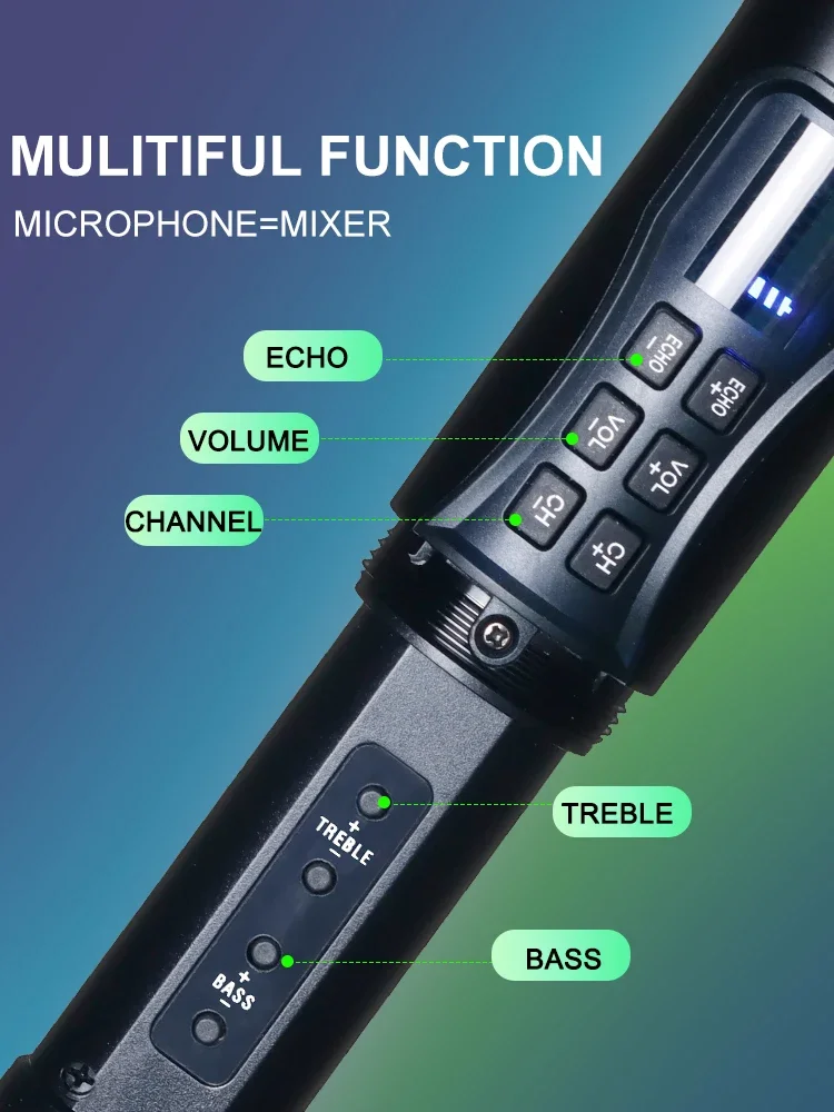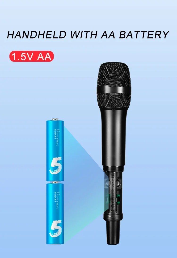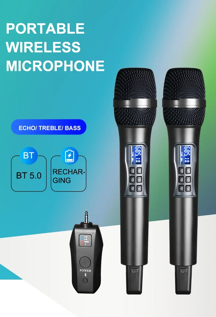 Micrófono inalámbrico UHF de 100 canales ajustado por eco, graves agudos, conector de Metal de 3,5mm, altavoz auxiliar, micrófono profesional para Karaoke
