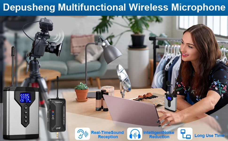 Depusheng professional UHF Dual Channel Wireless Headset/ Lapel Microphone System provides clear and warm vocal sound. This item works with any PA, Active Loudspeaker, Mixer, Amplifier or Karaoke Machine that has MIC INPUT and MIC VOLUME CONTROL.