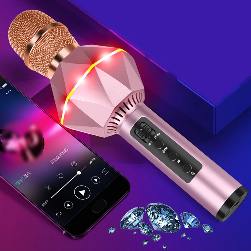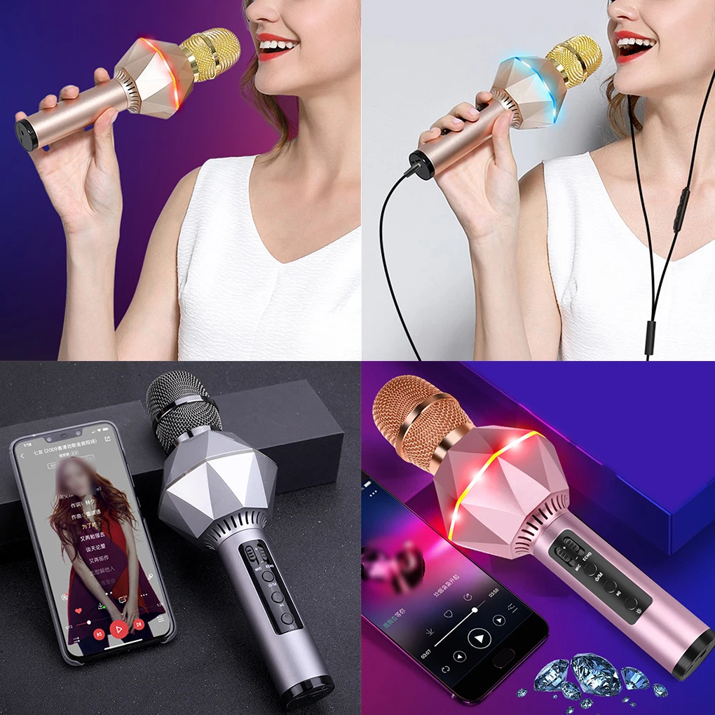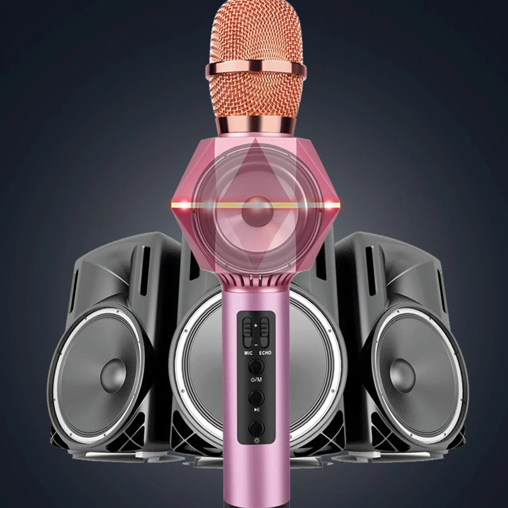 Comprar Micrófono inteligente portátil con forma geométrica, dispositivo inalámbrico con Bluetooth, modo estéreo multifunción, KTV, Karaoke, de bolsillo, K7