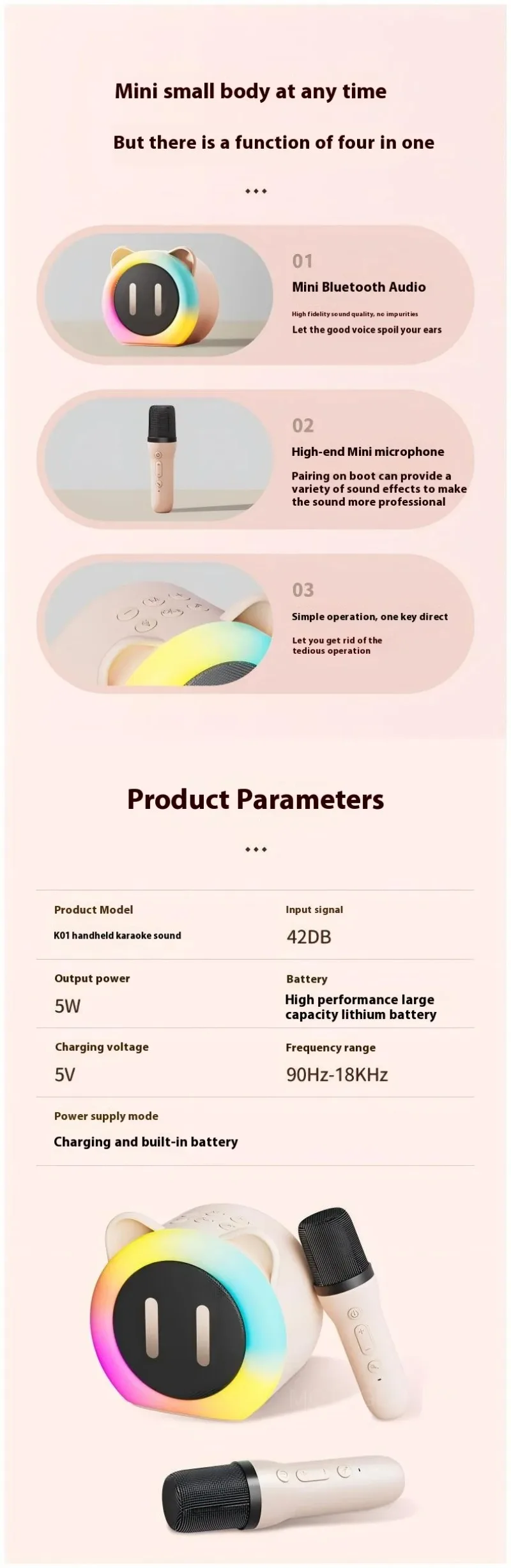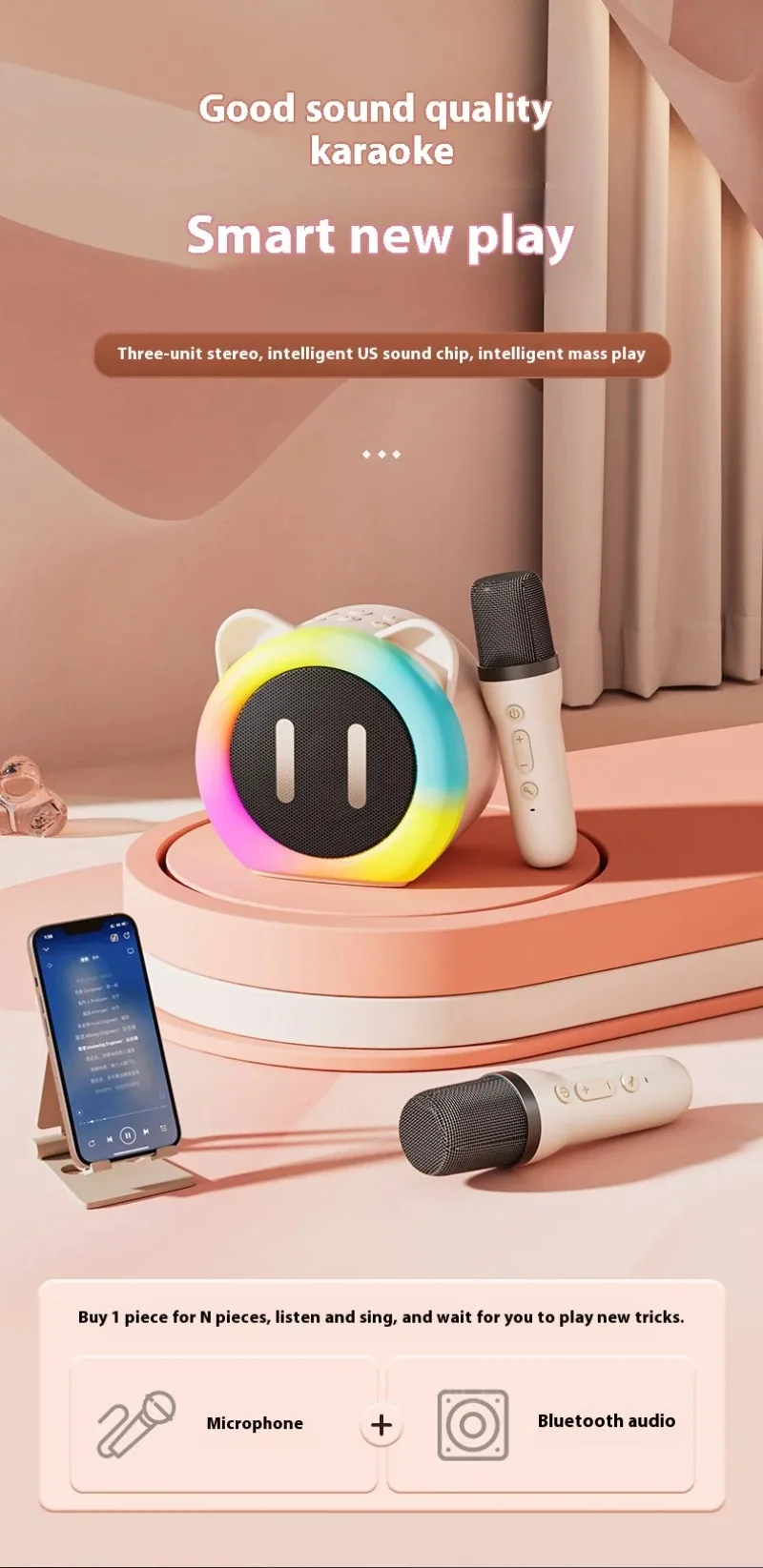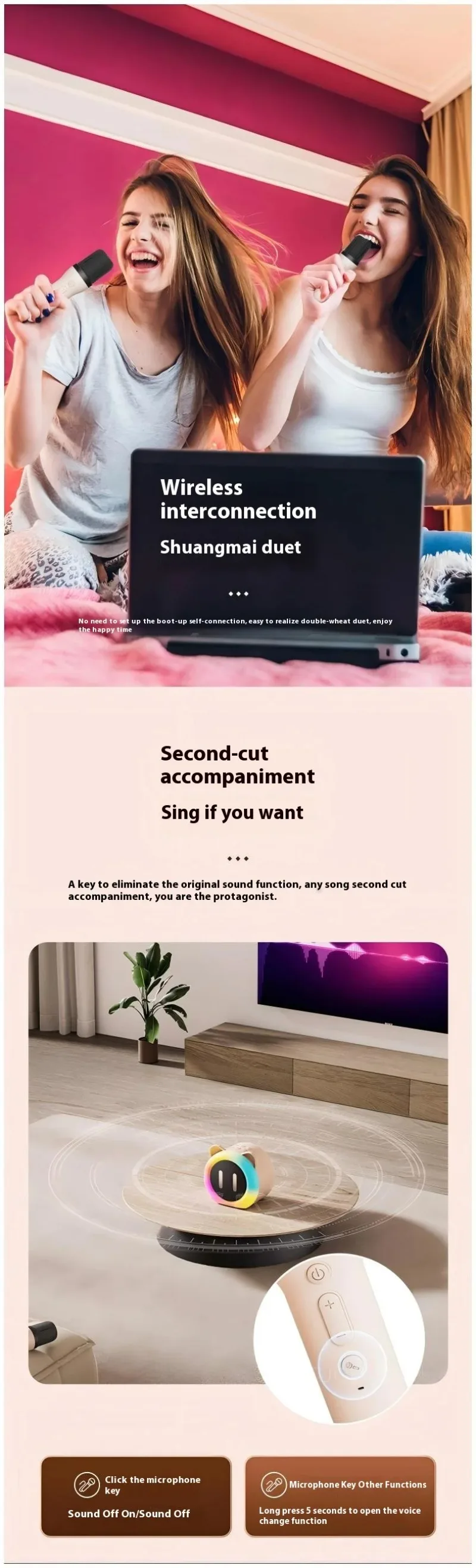 Comprar Micrófono de karaoke inalámbrico con altavoz Bluetooth para canto familiar, sistema de sonido portátil para fiestas