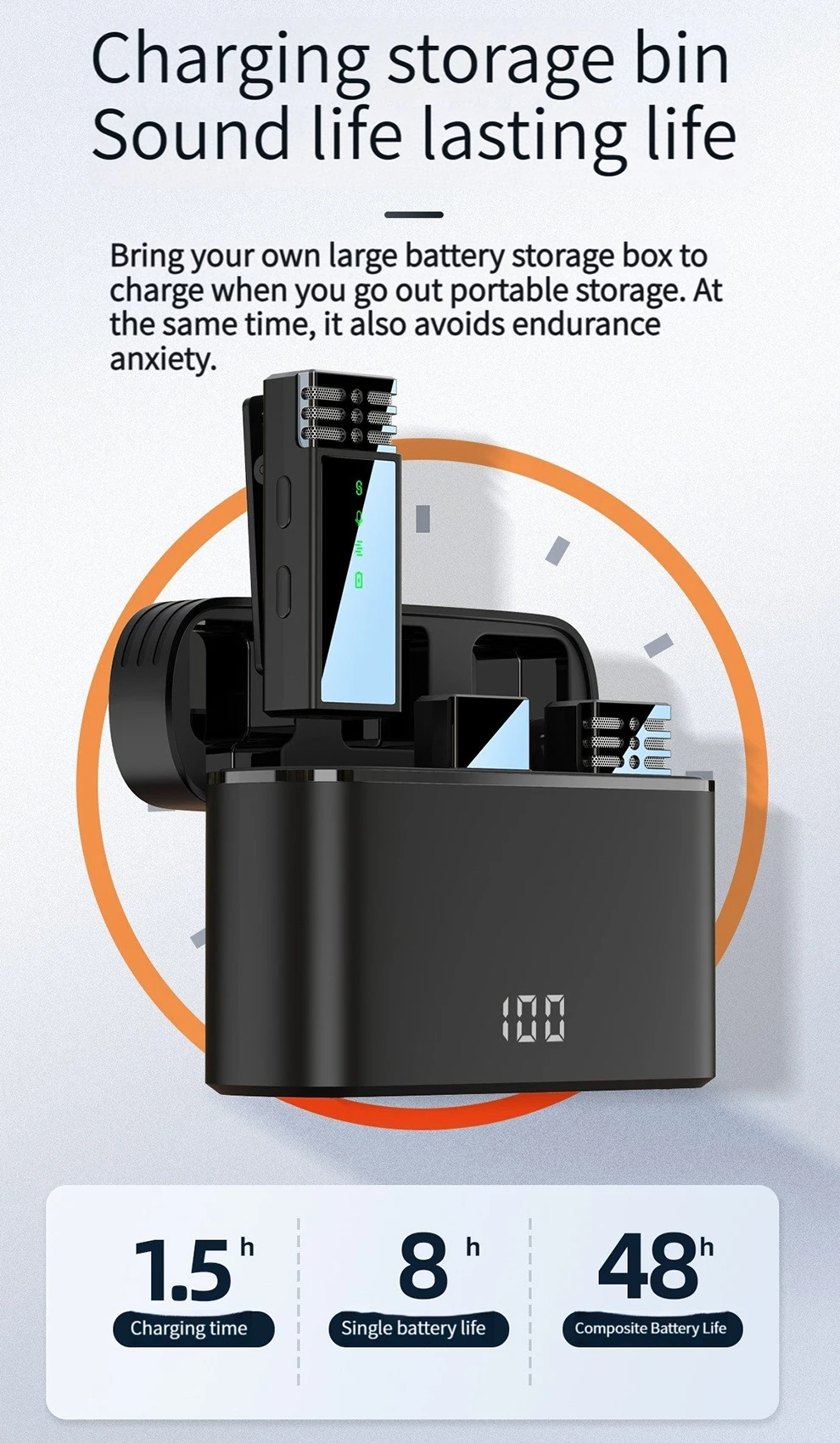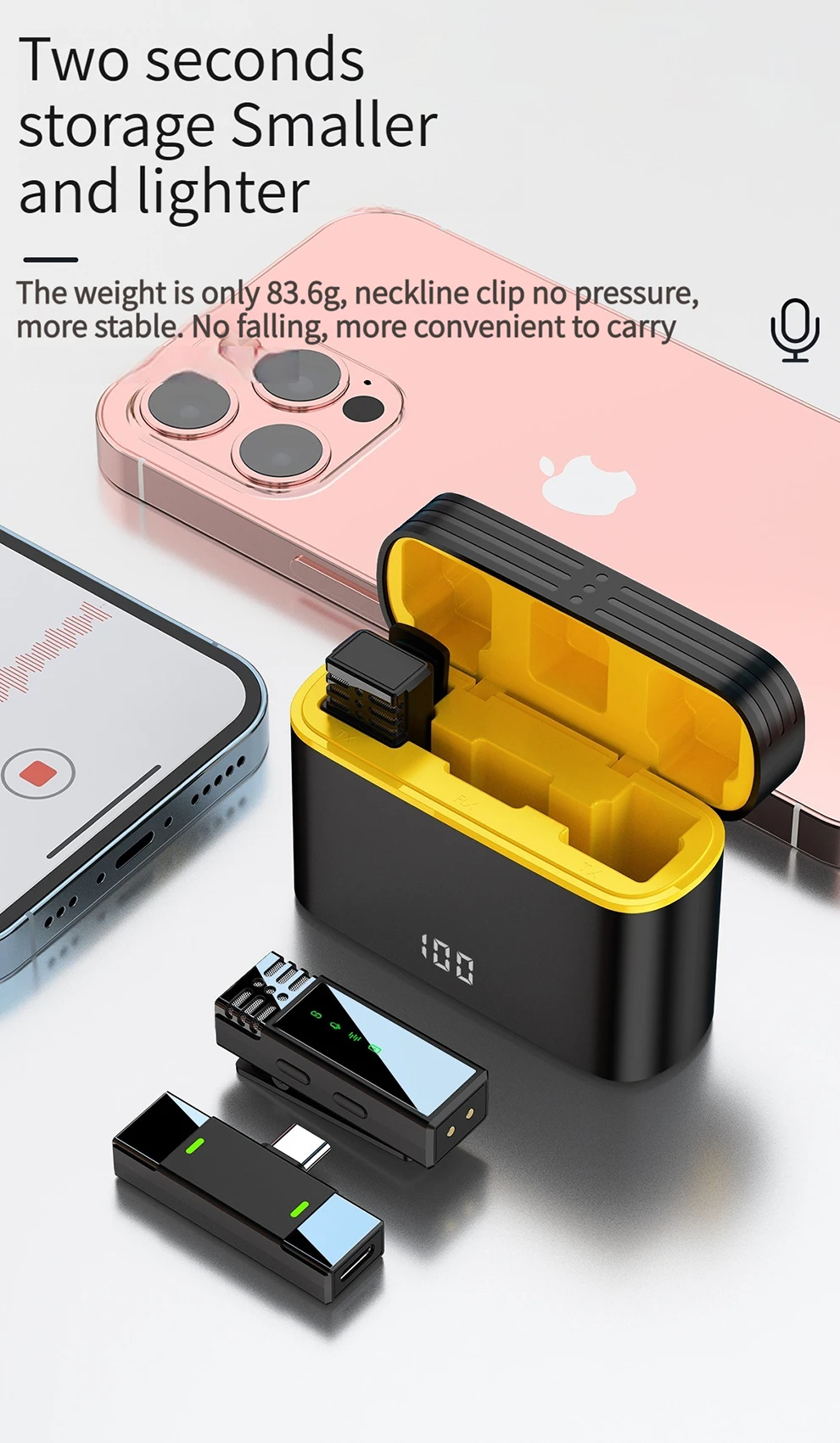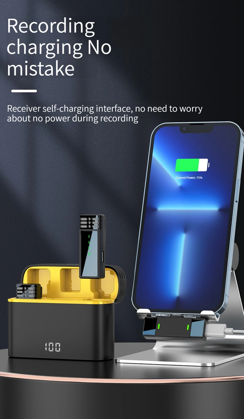 ✨Carga inalámbrica: Es a la vez un organizador y una estación de carga.El micrófono se cargará automáticamente cuando se coloque en el estuche de carga, lo cual es muy conveniente.