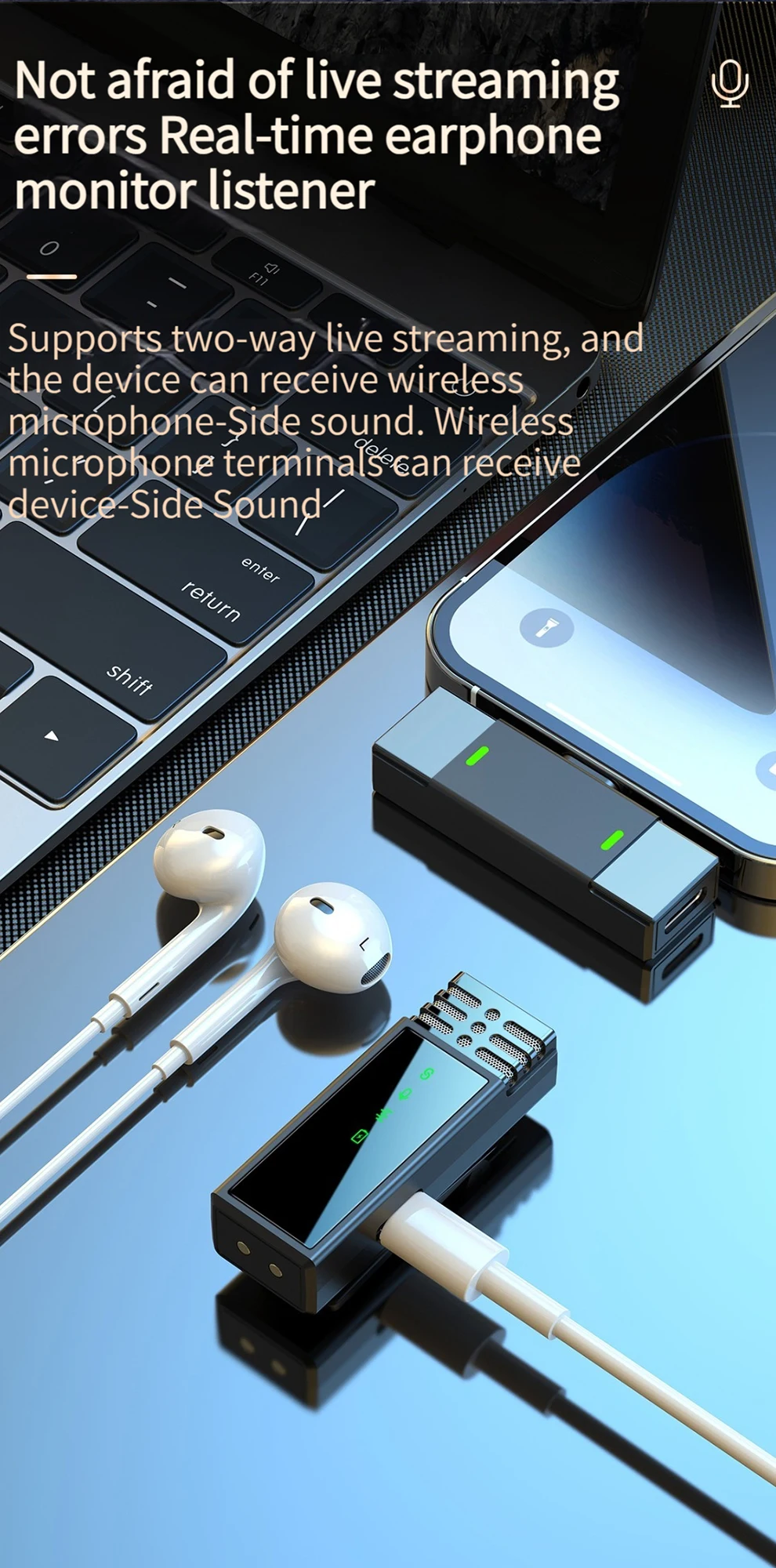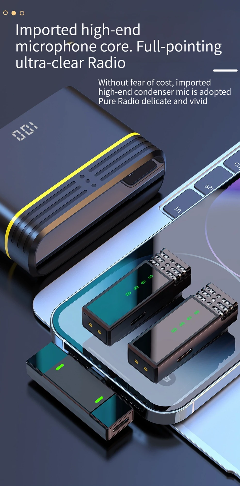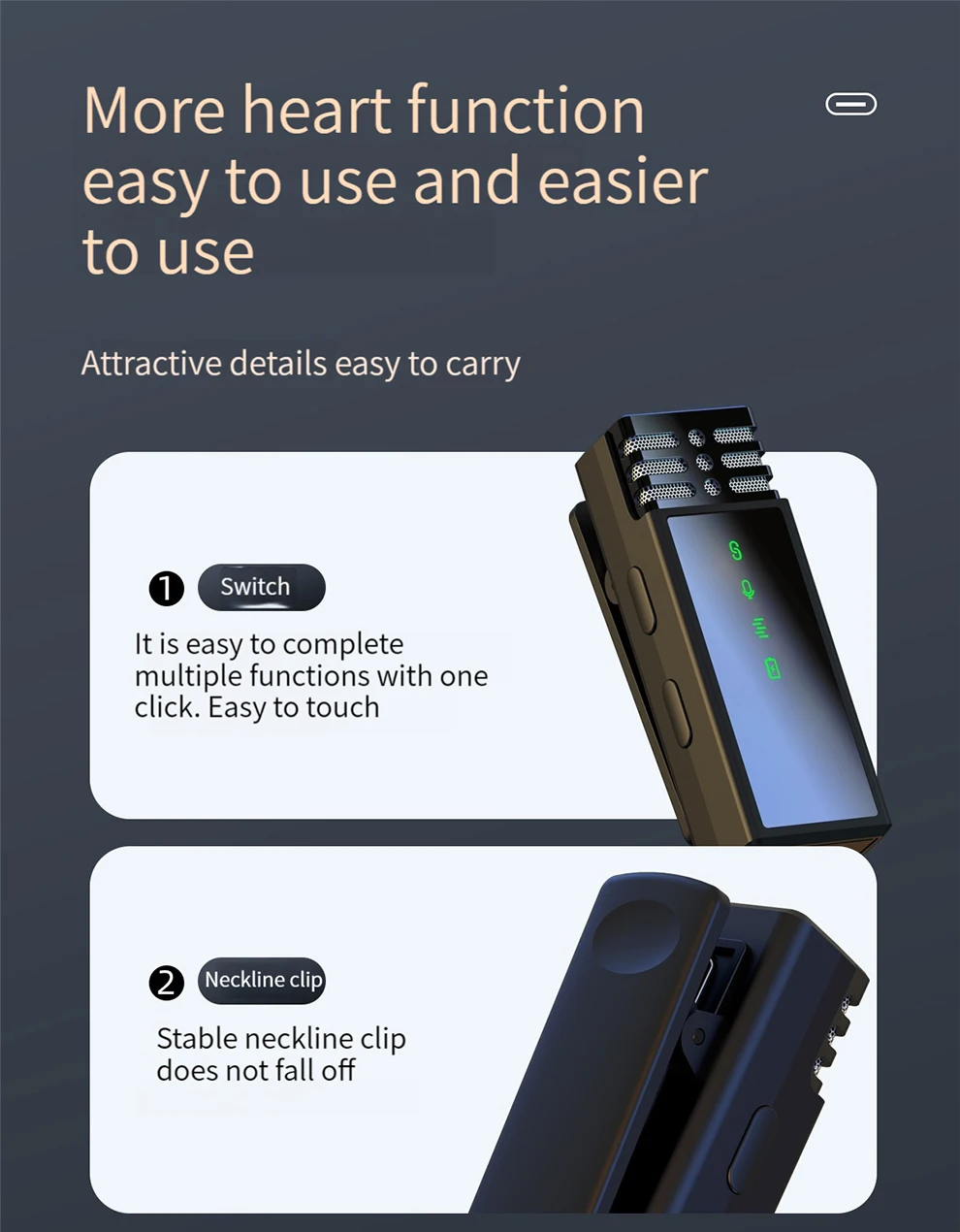 ✨Carga inalámbrica: Es a la vez un organizador y una estación de carga.El micrófono se cargará automáticamente cuando se coloque en el estuche de carga, lo cual es muy conveniente.
