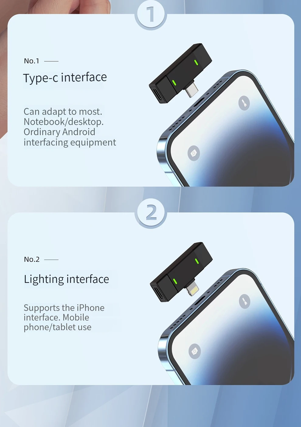 ✨La comunicación de nuestro producto es inalámbrica. Los patrones polares de nuestro producto son omnidireccionales.La distancia de transmisión de radio del micrófono es de 30M.