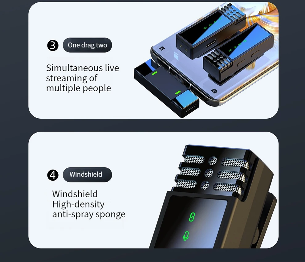✨3 niveles de reducción de ruido inteligente, Radio precisa: filtrado inteligente DSP del ruido ambiental, grabación real del sonido original. Micrófono Lavalier con cancelación de ruido bloquea el ruido de fondo y crea una calidad de sonido clara para su grabación.