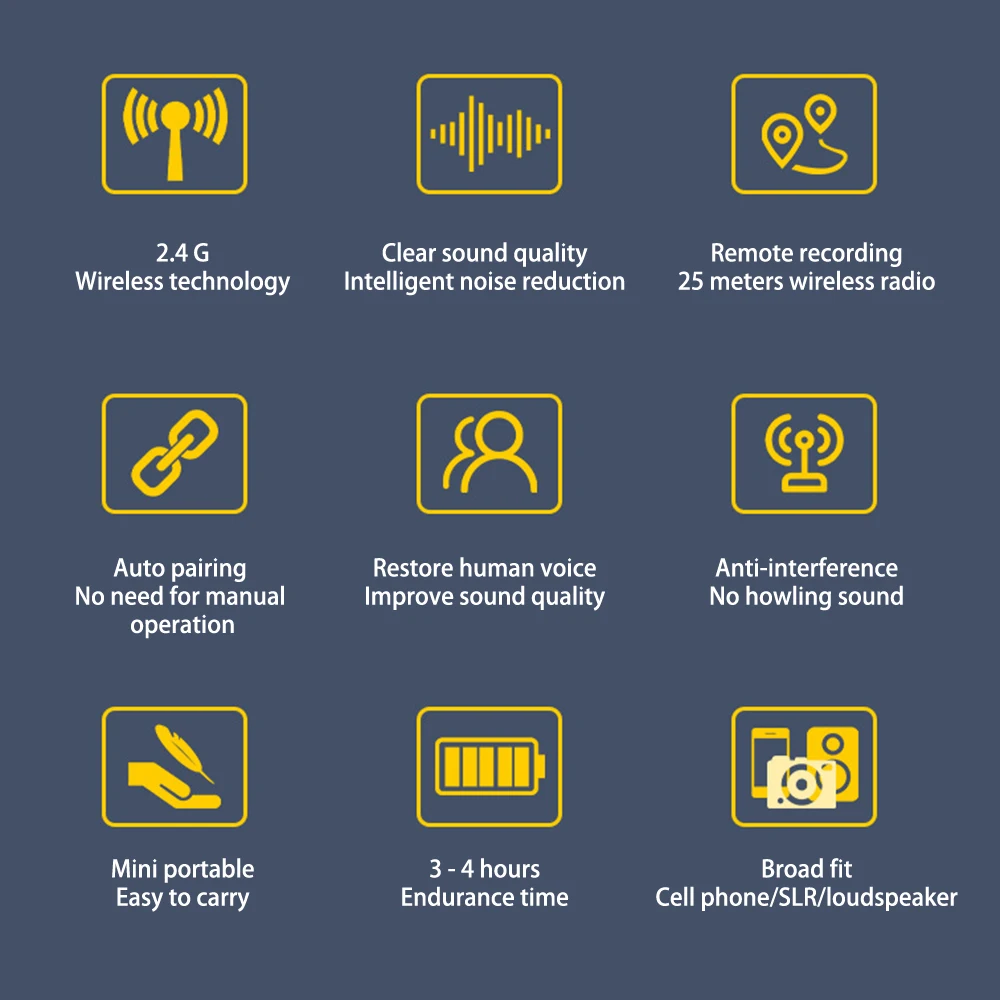 2.[Transmisión inalámbrica de 2,4 GHz] 2,4 GHz es la banda de frecuencia de muestreo digital inalámbrica Bluetooth, que tiene las características de transmisión estable, larga distancia de recepción, fuerte reducción de ruido y antiinterferencias.