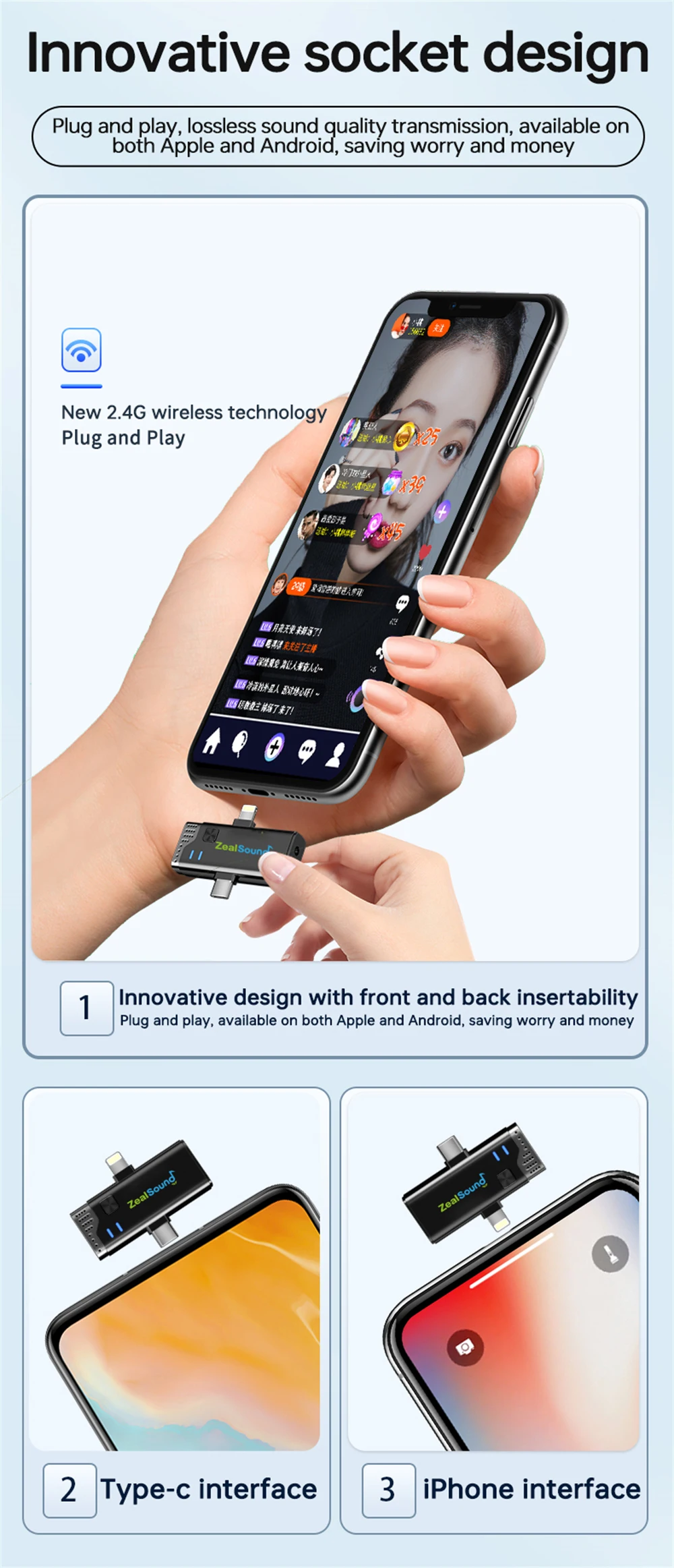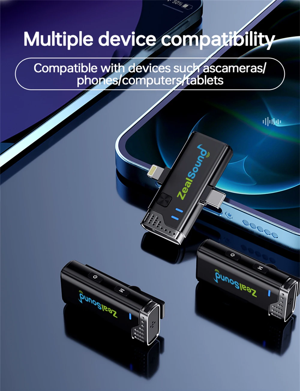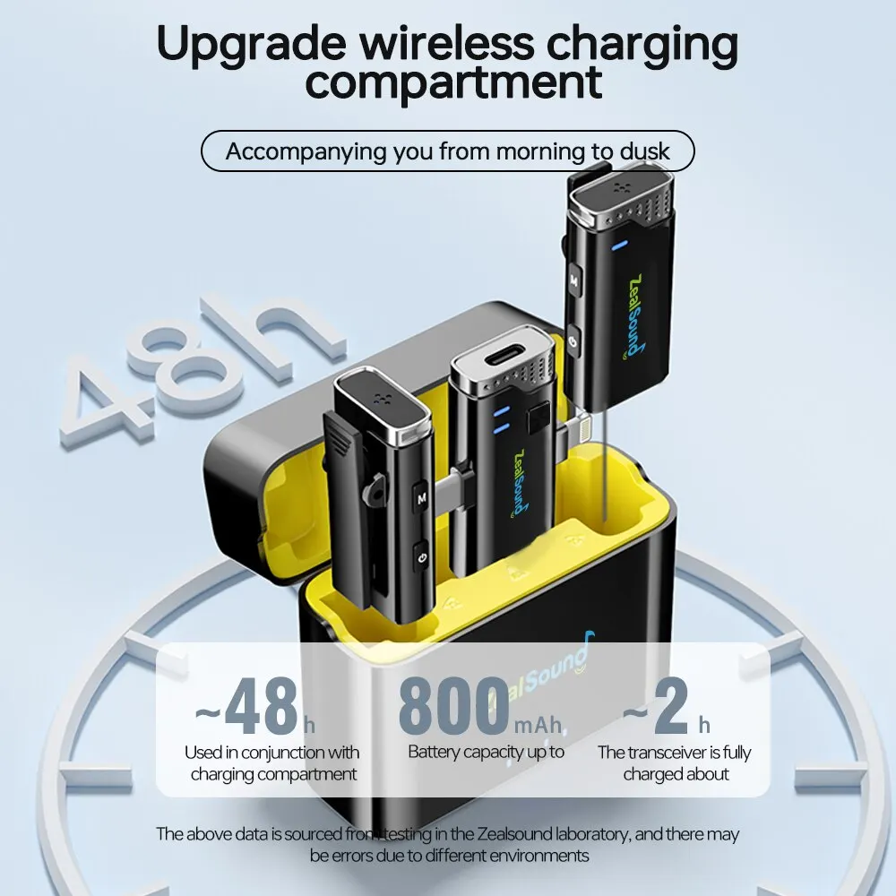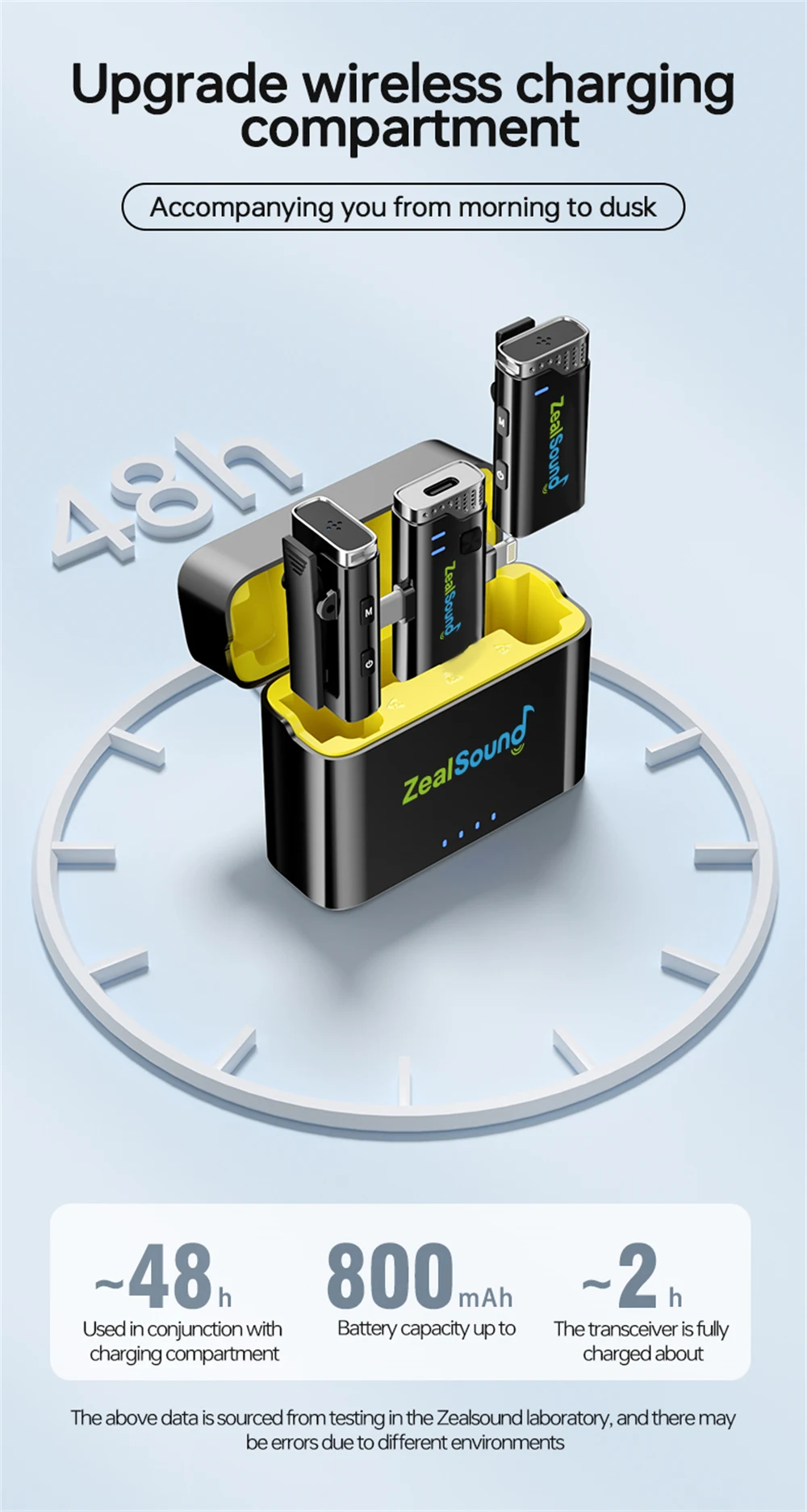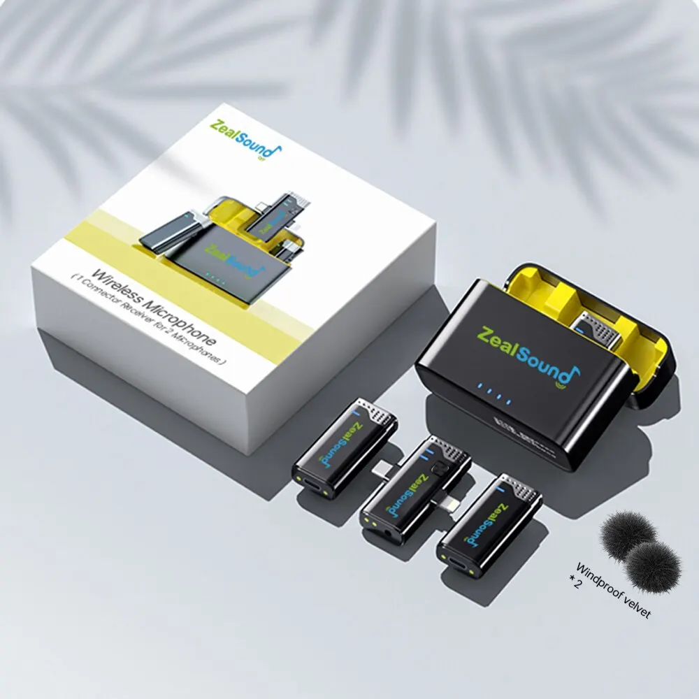 Comprar Micrófono Lavalier inalámbrico Zealsound para iPhone iPad Android con estuche de carga micrófono de solapa para entrevista Vlog transmisión en vivo