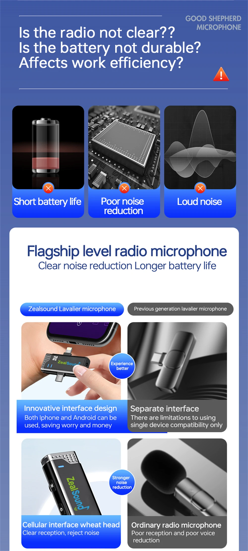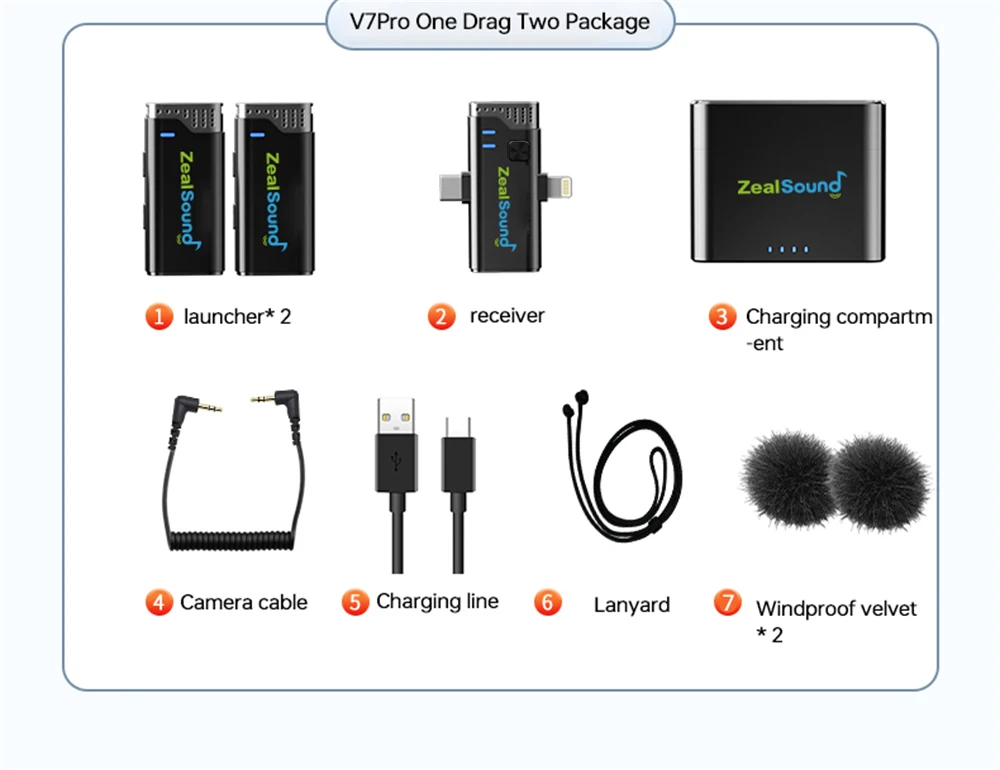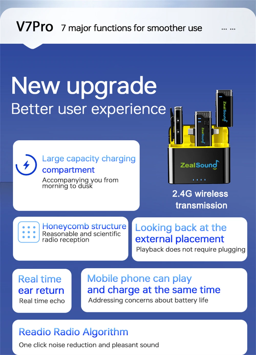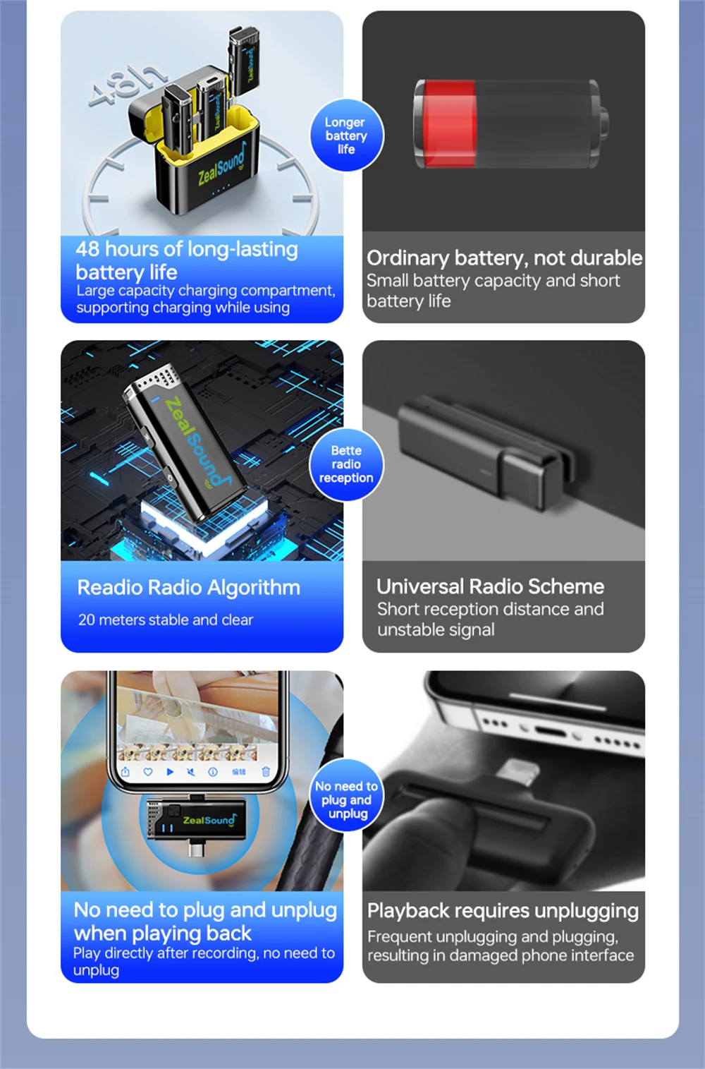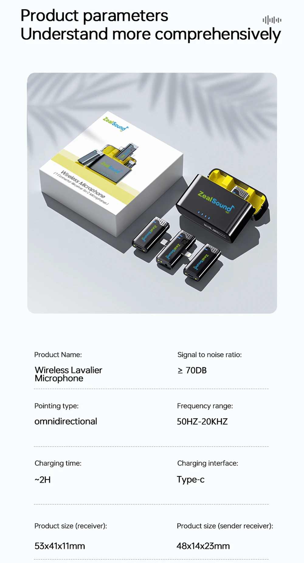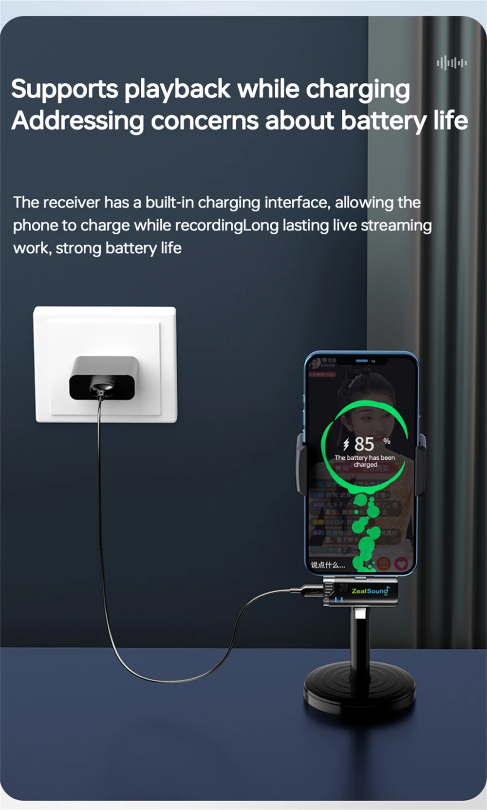 Comprar Micrófono Lavalier inalámbrico Zealsound para iPhone iPad Android con estuche de carga micrófono de solapa para entrevista Vlog transmisión en vivo