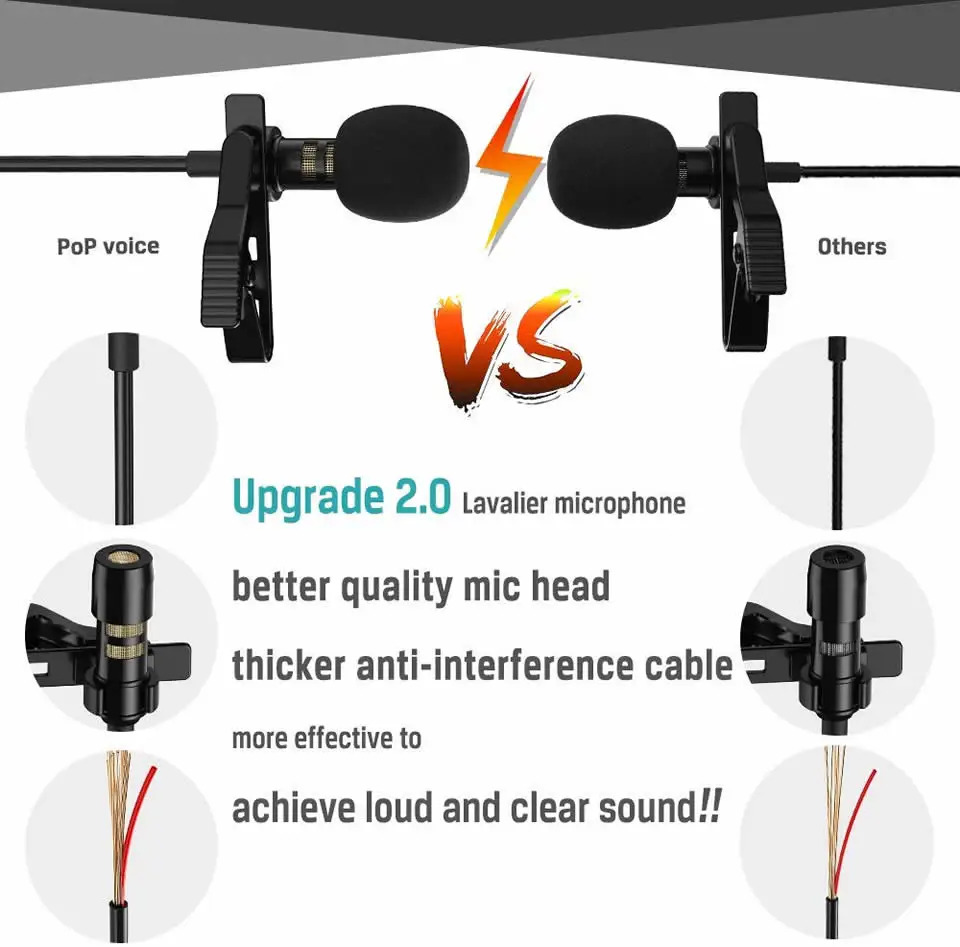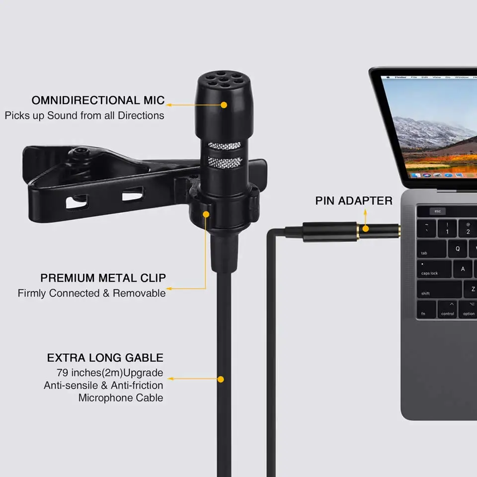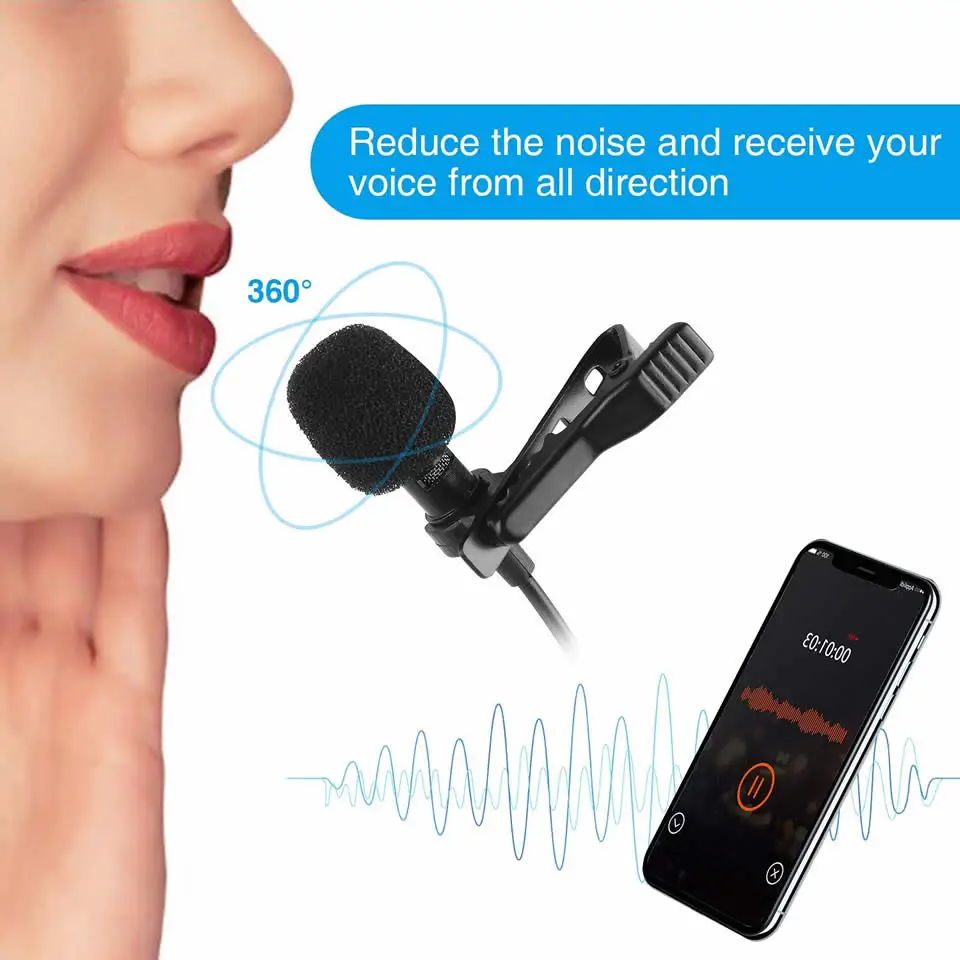 Micrófono de Metal omnidireccional de 1,5 m, Conector de 3,5mm, micrófonos con Clip de corbata Lavalier, Mini micrófono de Audio para cámara, ordenador portátil, teléfono
