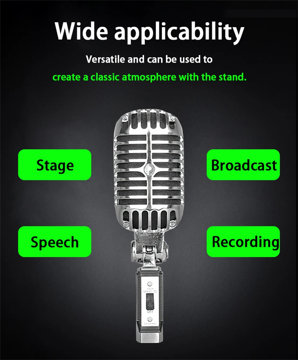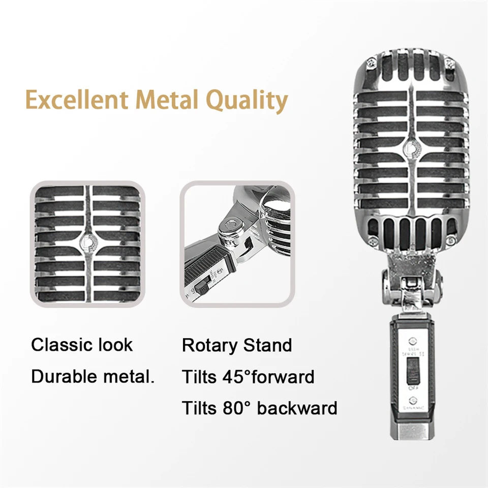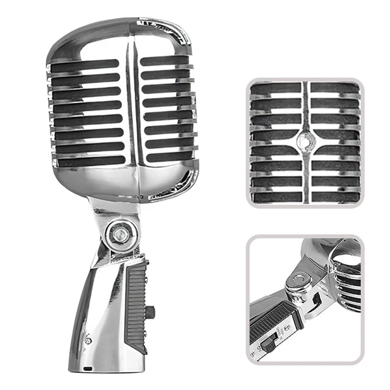 Comprar Micrófono de metal Vintage para 55SH clásico dinámico micrófono vocal soporte universal para karaoke de rendimiento en vivo