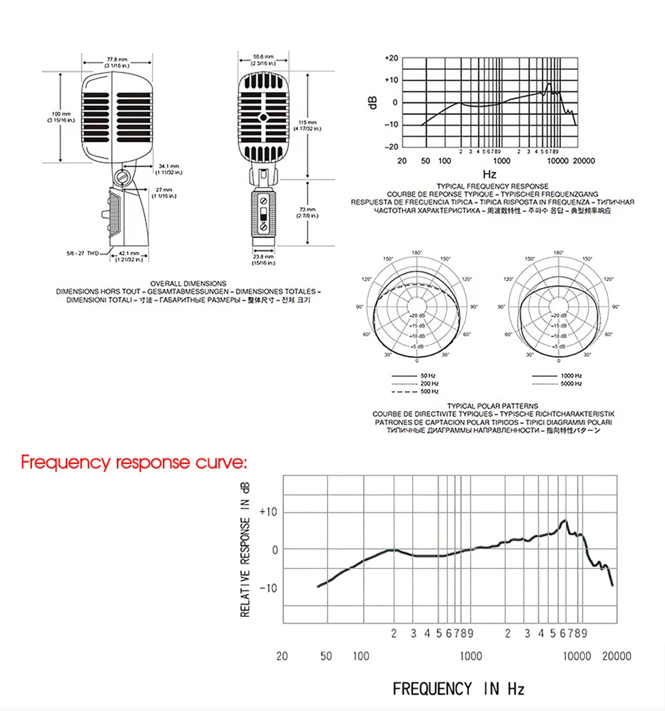 Vintage Metal Micrófono para SHURE 55SH Clásico Dinámico Vocal Mic Soporte Universal