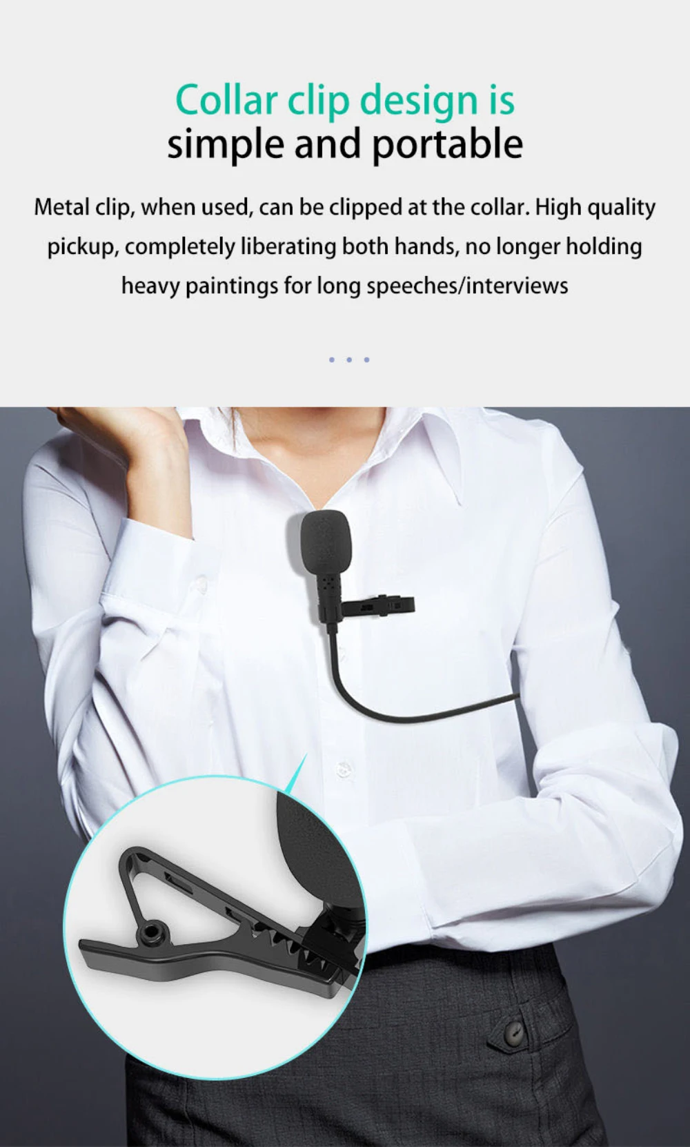 6. Diseño de clip de collar, fácil de usar, mandril de metal, se puede sujetar cuando se usa en el collar, recogida de alta calidad, manos completamente libres, no es necesario sostener un micrófono pesado para trabajar o jugar.