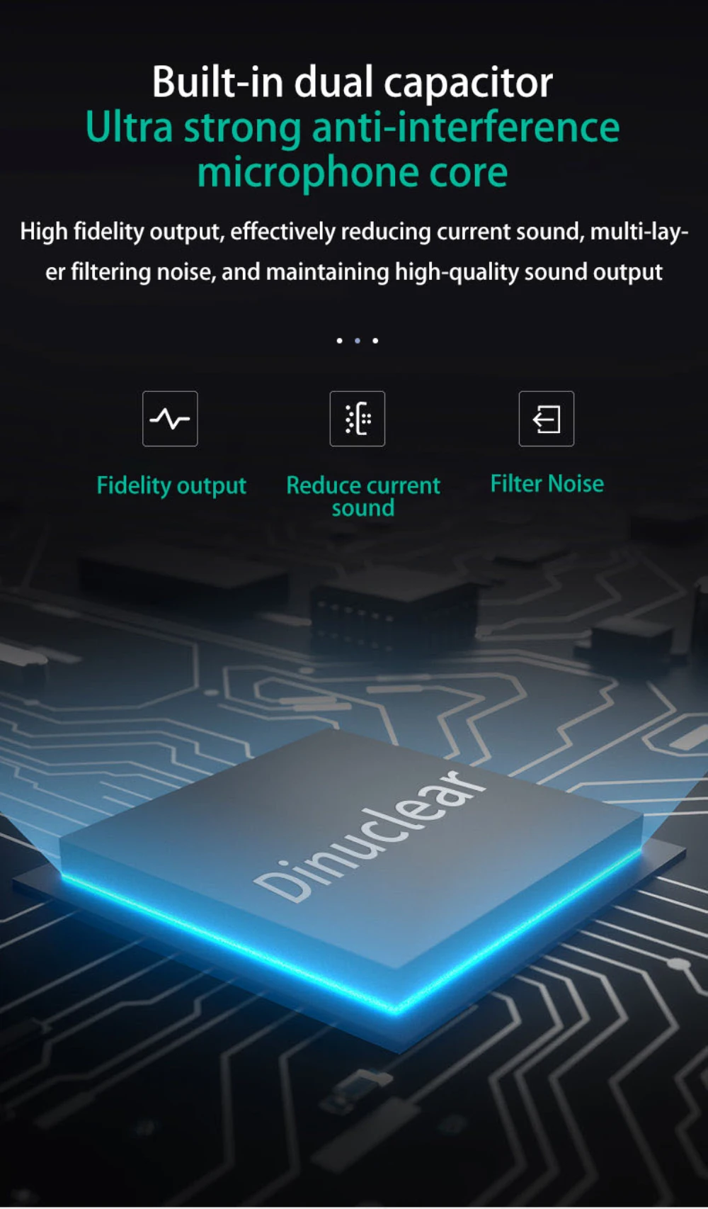 5. Condensadores duales incorporados, núcleo de micrófono súper antiinterferencias, salida de alta fidelidad, reduciendo efectivamente el sonido actual, filtrado de ruido multicapa y manteniendo una salida de sonido de alta calidad.