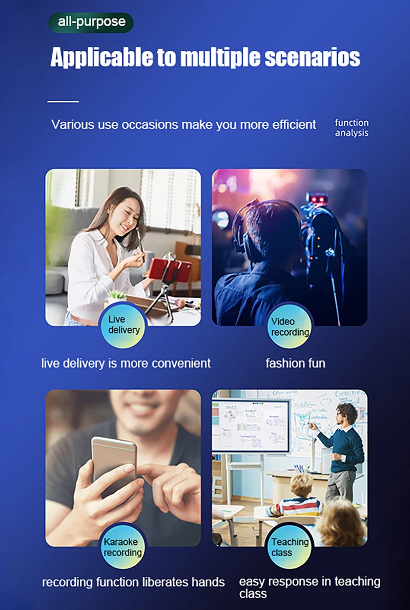Reducción de ruido inteligente, la voz humana es más clara y delicada, chip de reducción de ruido incorporado, con algoritmo de reducción de ruido Ai, fuerte capacidad antiinterferencia, puede identificar eficazmente el sonido original y seguir grabando claramente en un entorno ruidoso