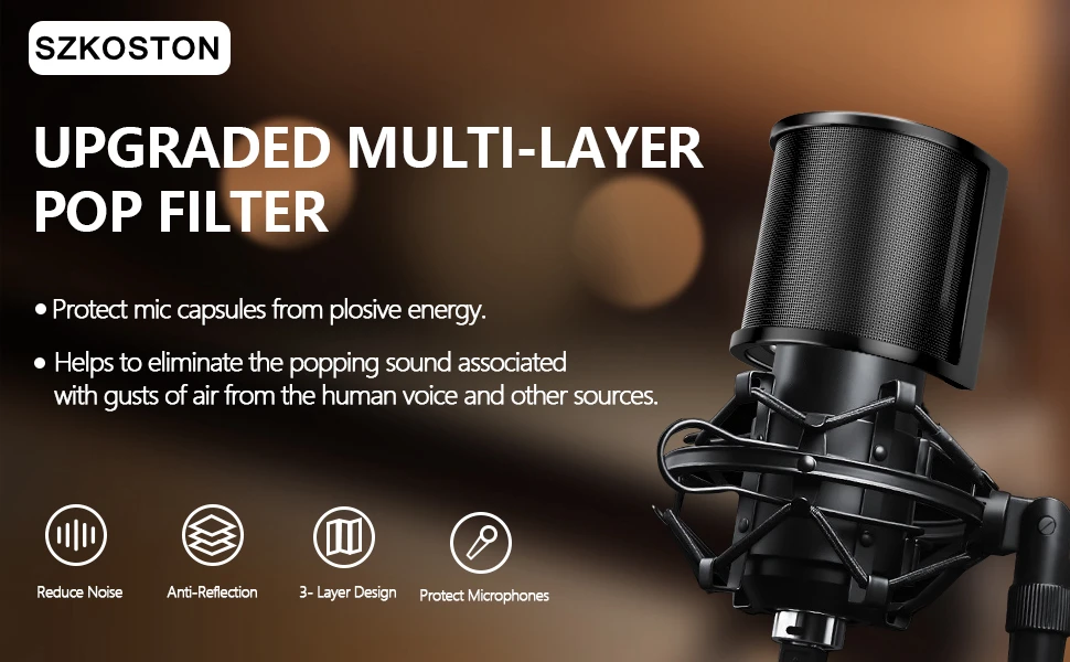 ESCUDO DE MIC DE FILTRO DE TRES CAPAS: el diseño de tres capas incluye capa de espuma, capa de red metálica y capa básica de etamina que puede reducir eficazmente la explosiva, los estallidos, los crujidos, la interferencia del viento y los sonidos respiratorios al grabar voces. Absolutamente necesario para grabar, hablar o cantar. Este aislamiento de escudo de micrófono de estudio ayuda a obtener su mejor grabación vocal.