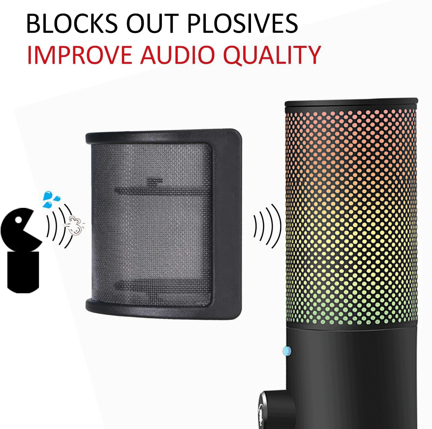 ESCUDO DE MIC DE FILTRO DE TRES CAPAS: el diseño de tres capas incluye capa de espuma, capa de red metálica y capa básica de etamina que puede reducir eficazmente la explosiva, los estallidos, los crujidos, la interferencia del viento y los sonidos respiratorios al grabar voces. Absolutamente necesario para grabar, hablar o cantar. Este aislamiento de escudo de micrófono de estudio ayuda a obtener su mejor grabación vocal.