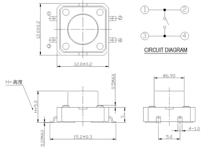 50pcs SMT SMD 12*12*4.3/5/6/7/8/9/10/12MM Touch Button Micro Switch