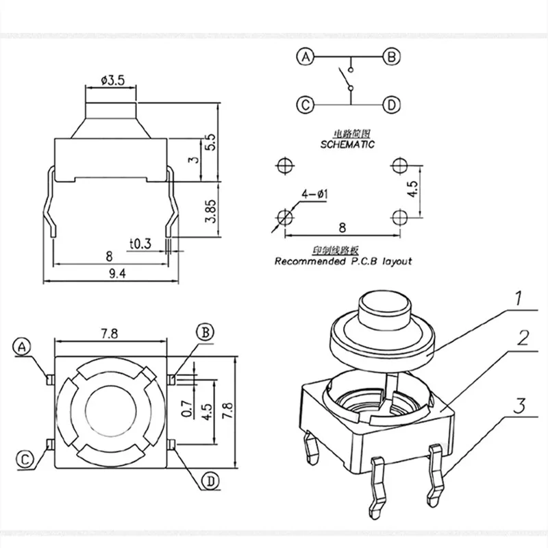 Comprar Microinterruptor de silicona conductora, botón táctil sin sonido, reinicio automático, 8x8x5MM, 4 pines, 20 unidades por lote