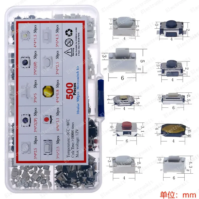 Microinterruptor surtido de pulsadores, interruptores táctiles, interruptor de hoja de reinicio, teclas de control remoto de coche, microinterruptor de botón