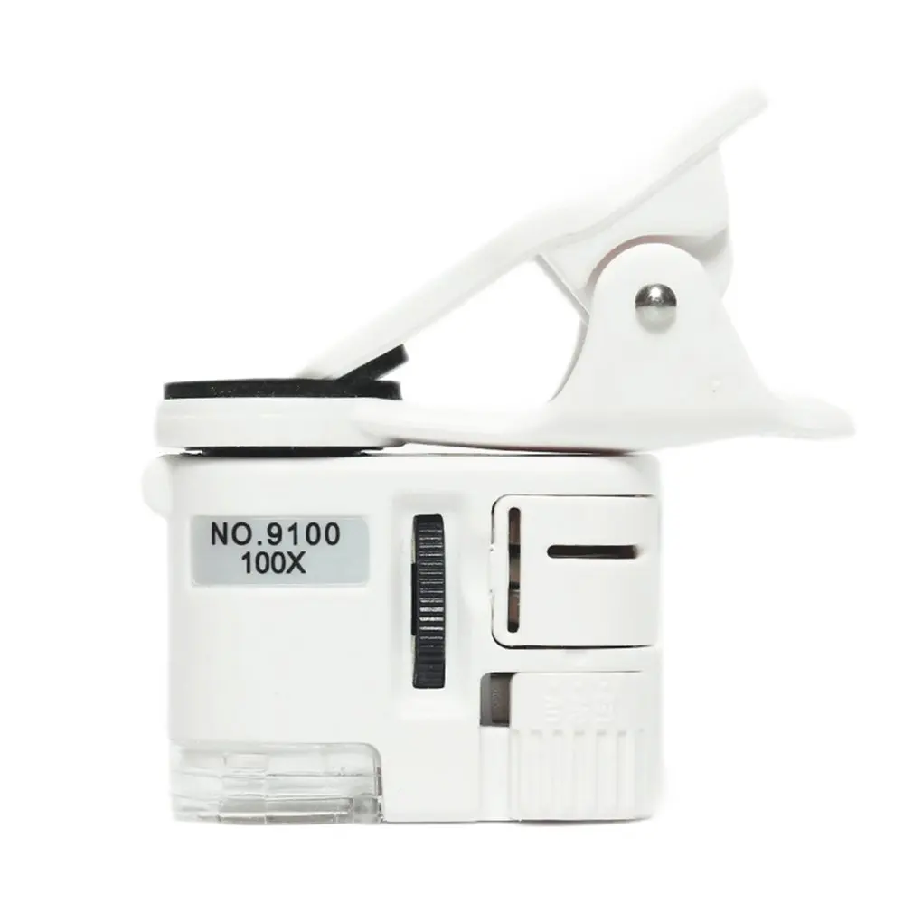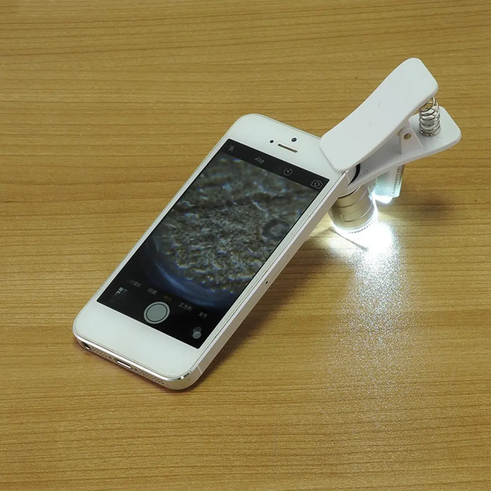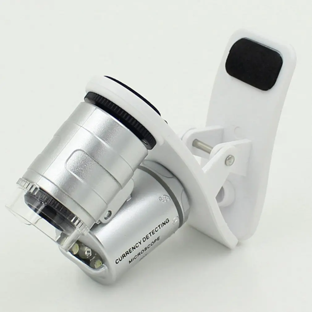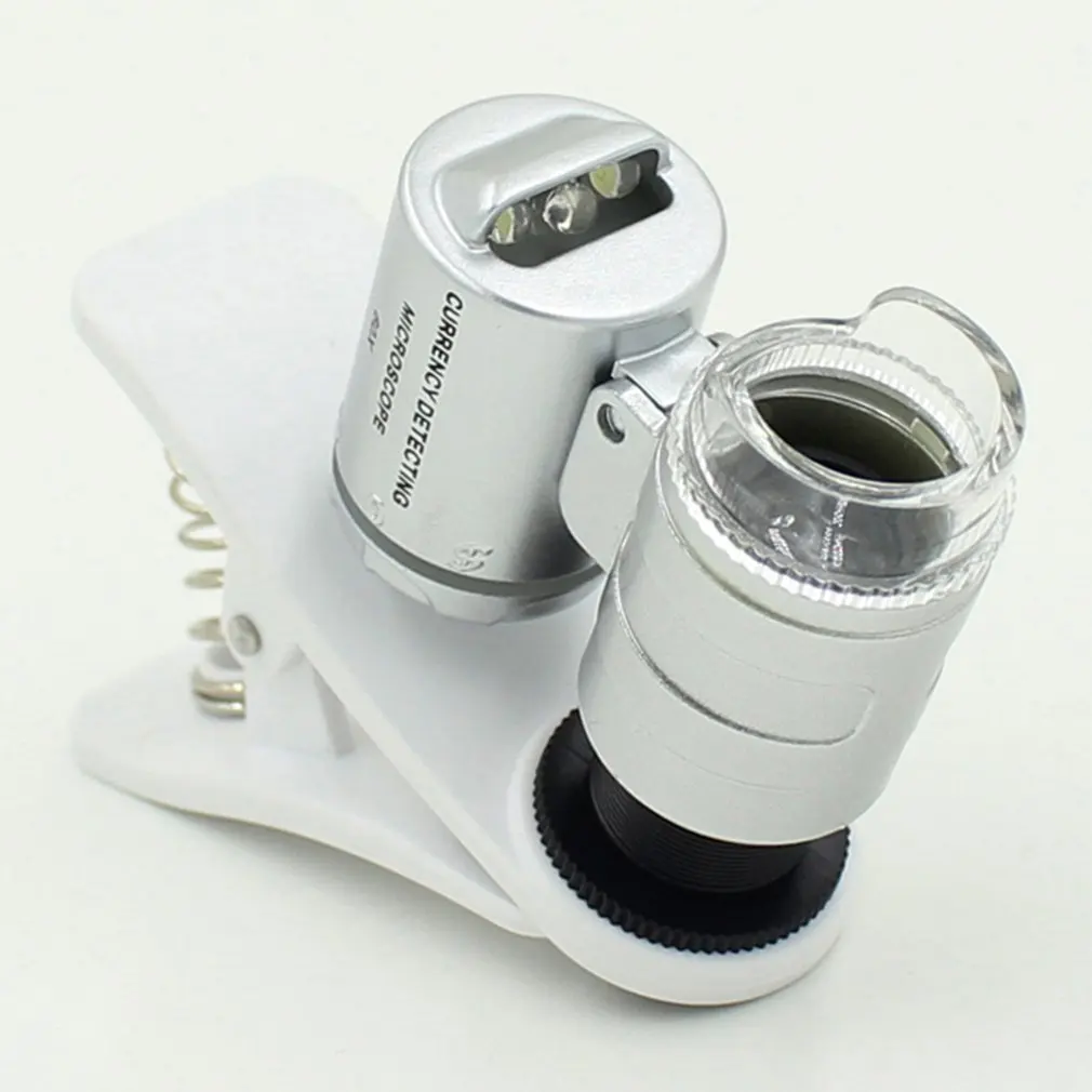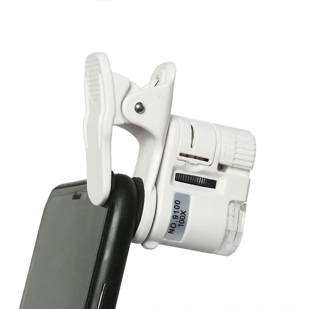 Microscopio para teléfono móvil 60/100X, instrumento LED, lupa, microscopio de bolsillo ajustado con enfoque, con Clip para teléfono móvil, luz UV